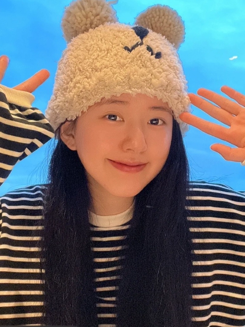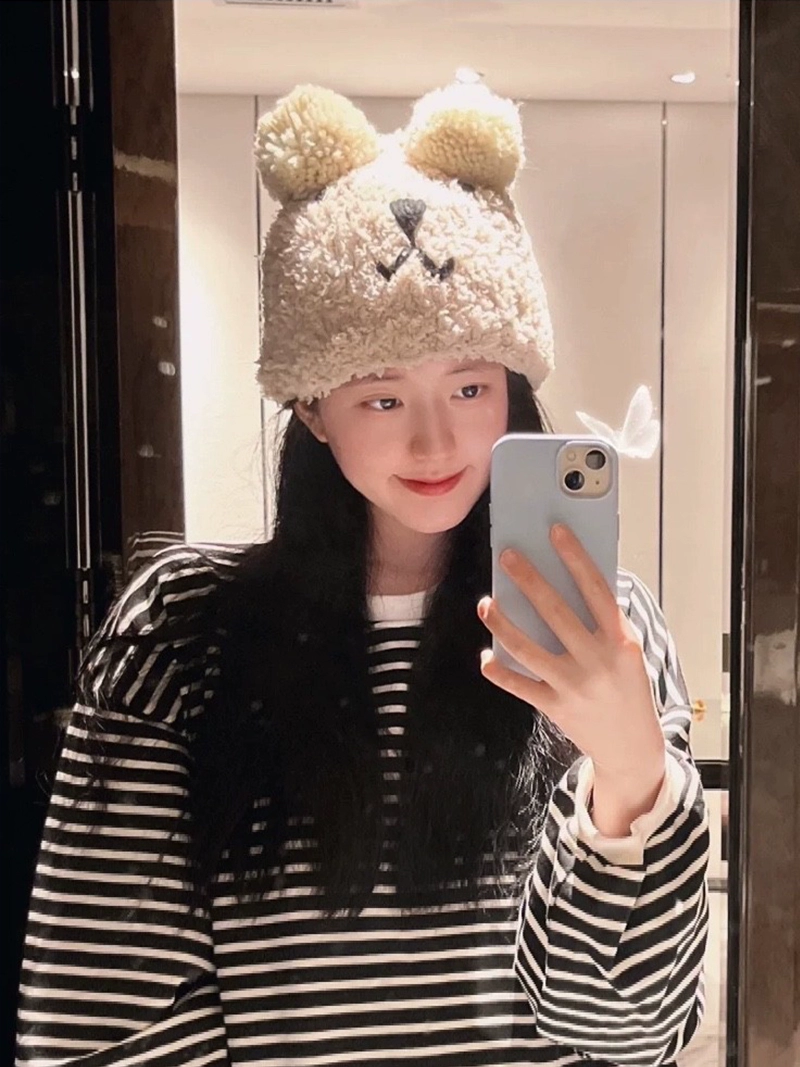 Zhao Lusi’s same style bear thick line lamb velvet woolen hat women’s warm ear protection knitted hat winter ins cute