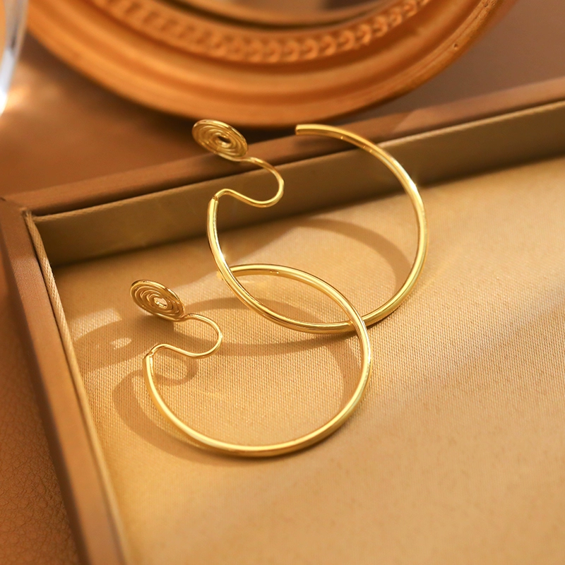 Zhao Lusi's same style earrings, cold style HOOP exaggerated large earrings, women's sterling silver mosquito coil disc ear clips without pierced ears