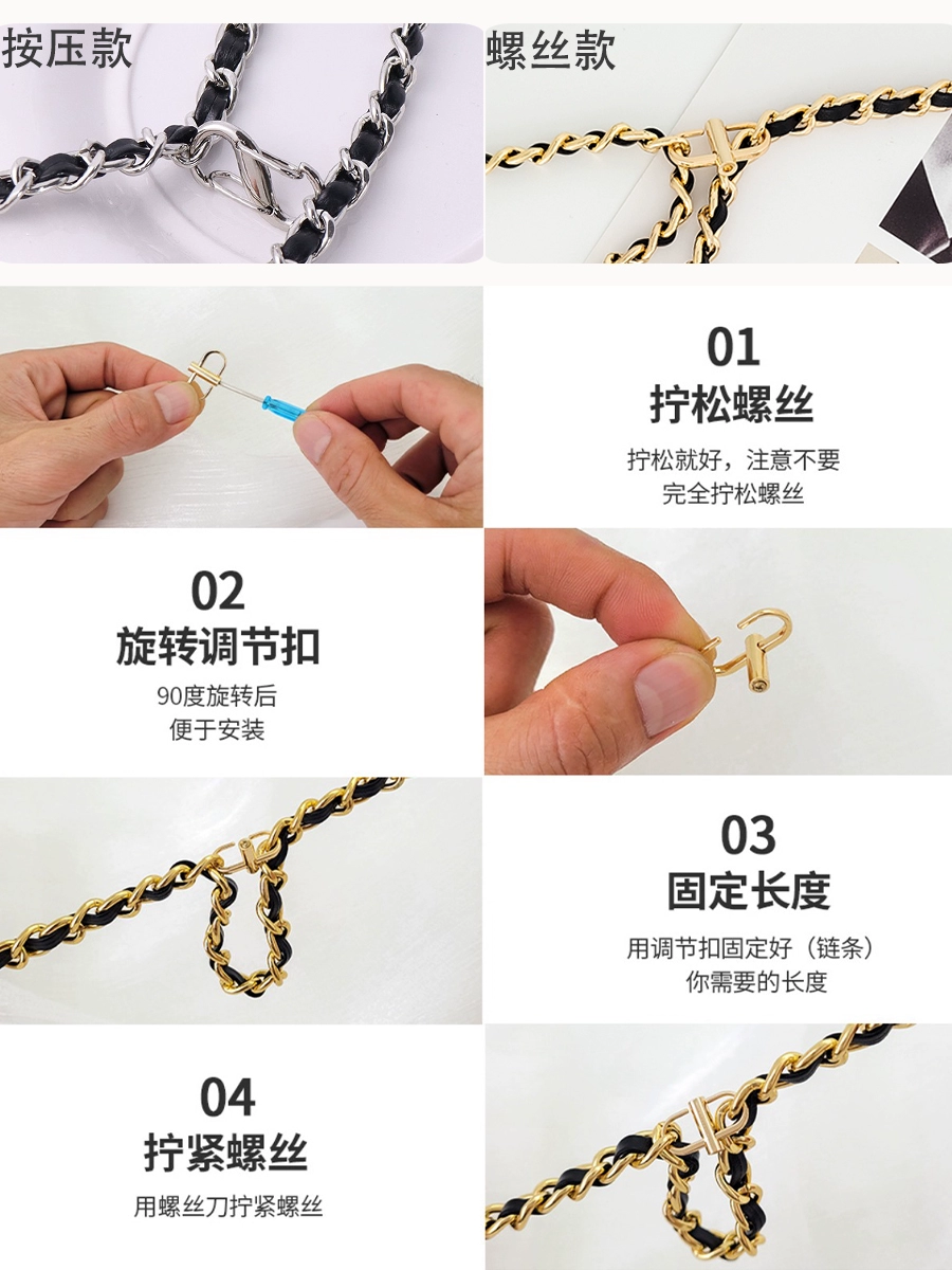 Zhen decorated bag chain adjustment buckle bag chain length adjuster small sachet with shoulder strap shortening buckle artifact accessories