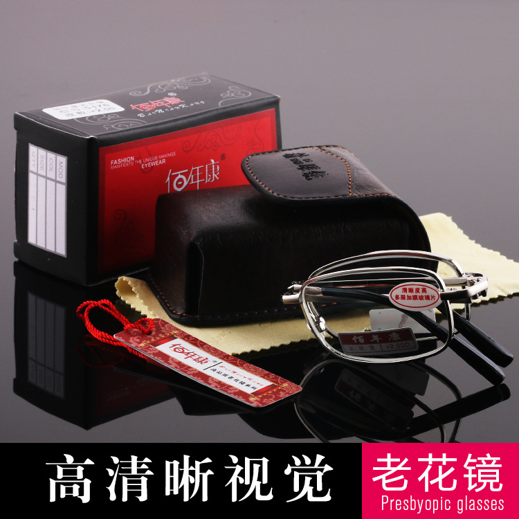 | nameOriginal | Zheng brand high-grade Bai Nian Kang folding reading glasses optical glass coated old light standard interpupillary distance for men and women Wholesale |