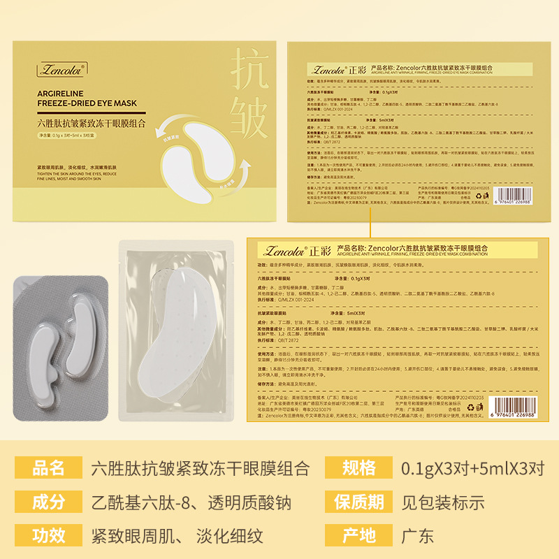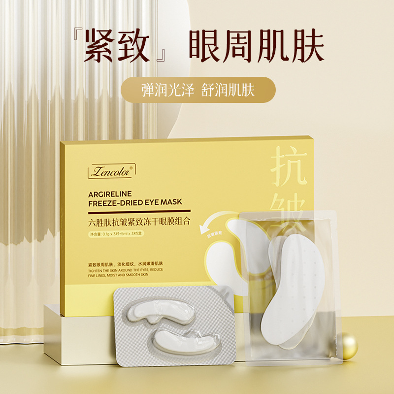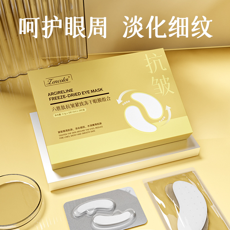 | nameOriginal | Zhengcai Liusheng Peptide Anti-wrinkle Tightness Eye Mold Combination Improving Dark Circles under the Eyeses Collagen Freeze-dried Eye Mold Sticker |