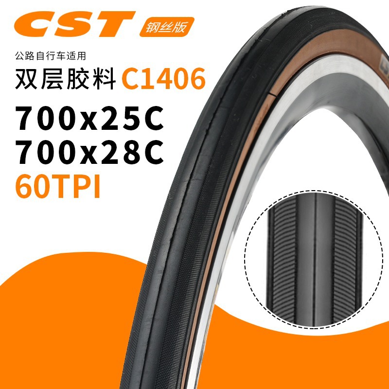 | nameOriginal | Zhengxin CST Road car 700C tire 25 28 yellow side road bike tire c1406 dead speed tire |