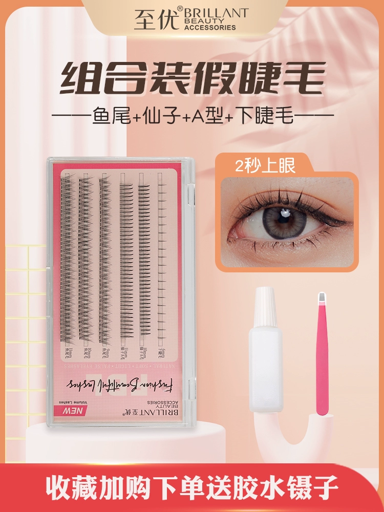 | nameOriginal | Zhiyou Natural False Eyelashes Fishtail + Fairy + Lower Eyelashes Comic Mixed Pack Simulated Single Cluster Self-Adhesive Grafting |