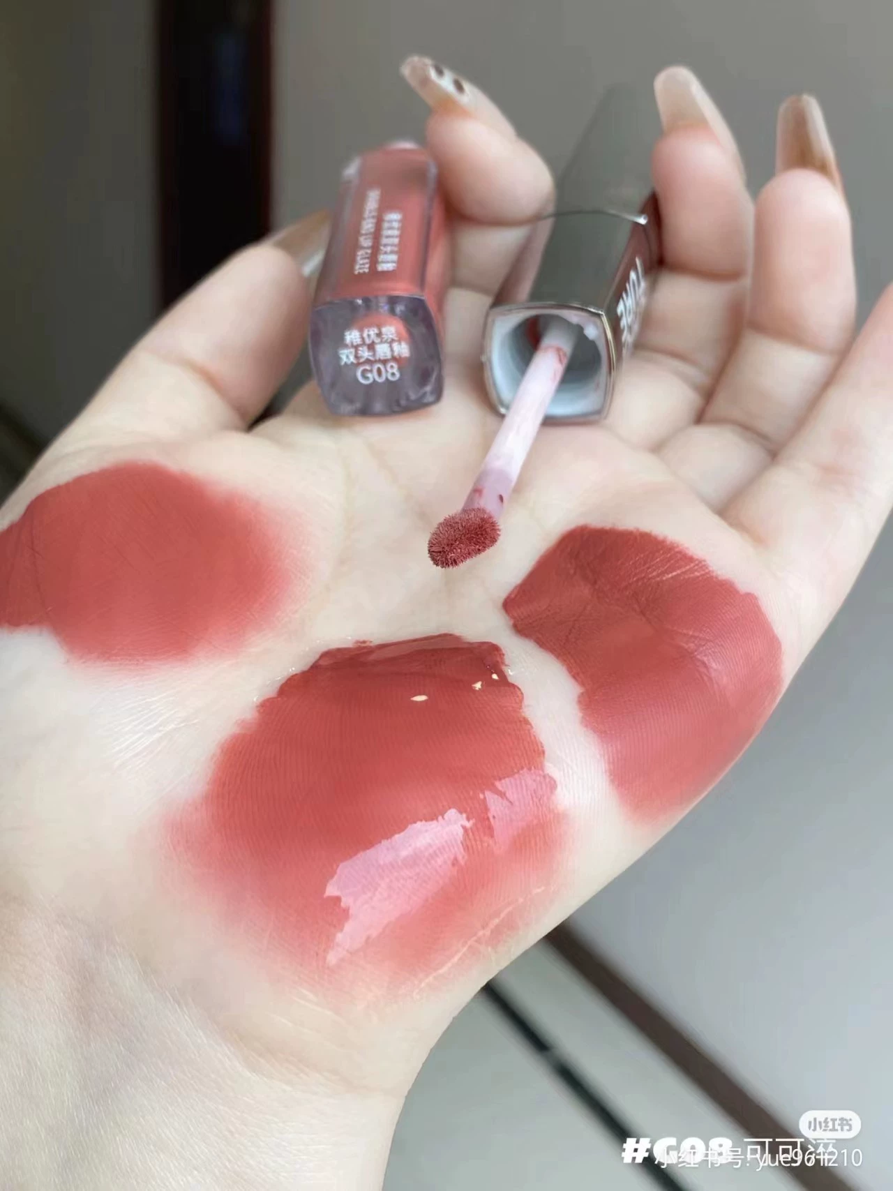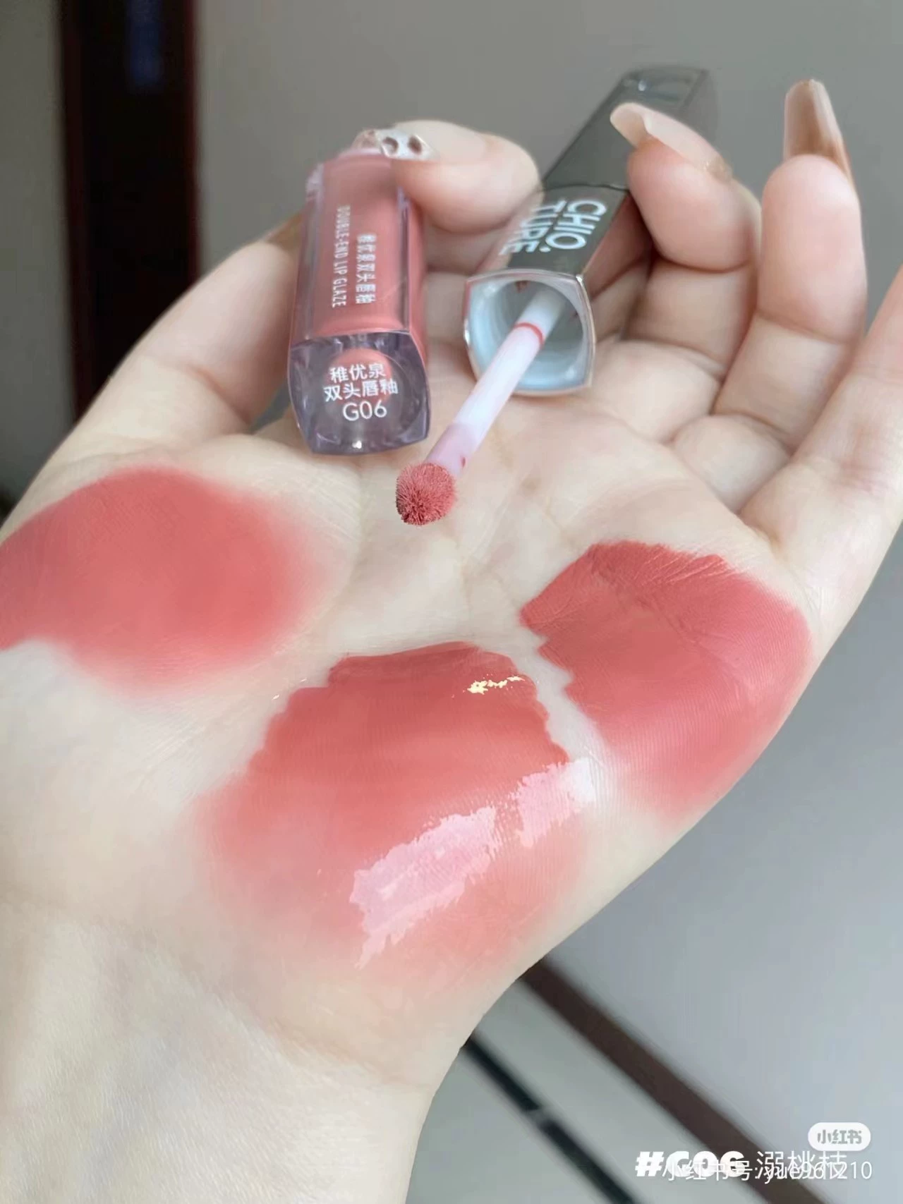 | nameOriginal | Zhiyouquan double-ended lip glaze mirror water-glossy transparent lip gloss matte lip mud lipstick is not easy to stain and does not fade. |