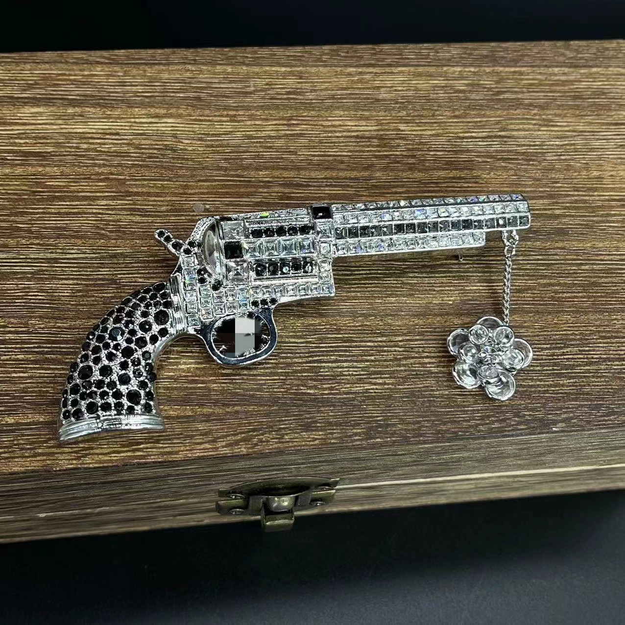 | nameOriginal | Zhonggu vintage Xiangjia high-end design sense European and American creative pistol personality inlaid platinum-plated brooch direct sales |