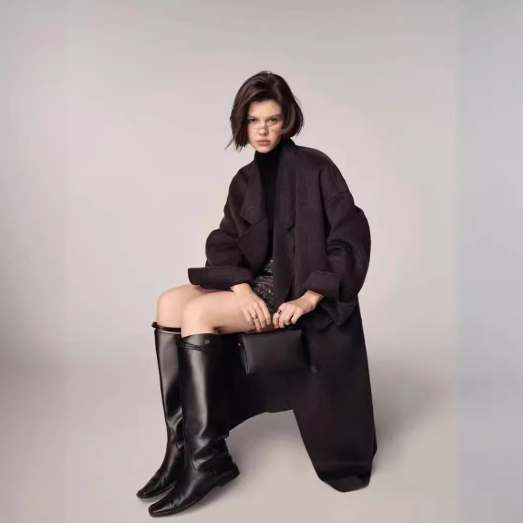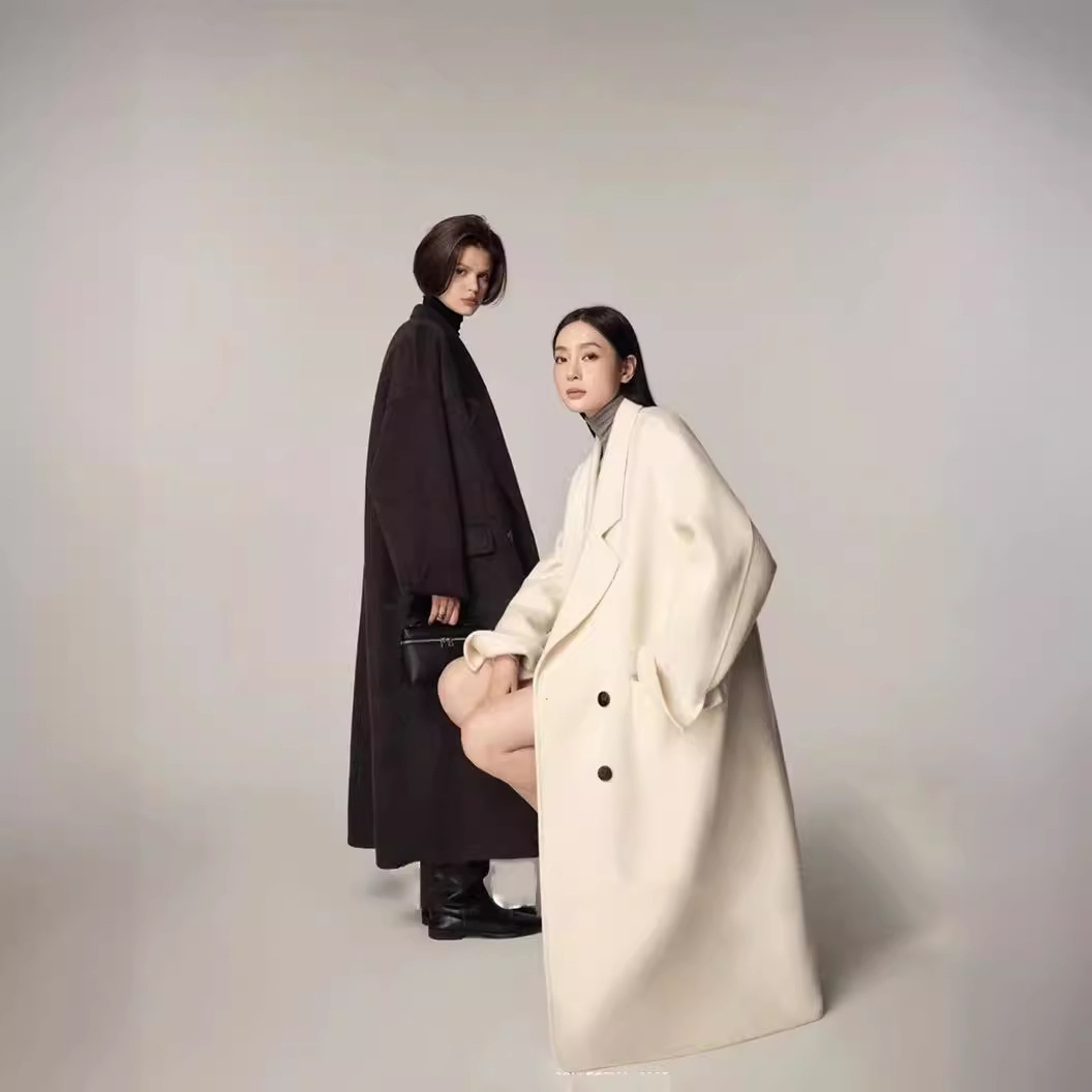 Zhou Miao ZHOUMIAO 900g sheep wool double-sided woolen coat women’s autumn and winter arc split cocoon woolen coat