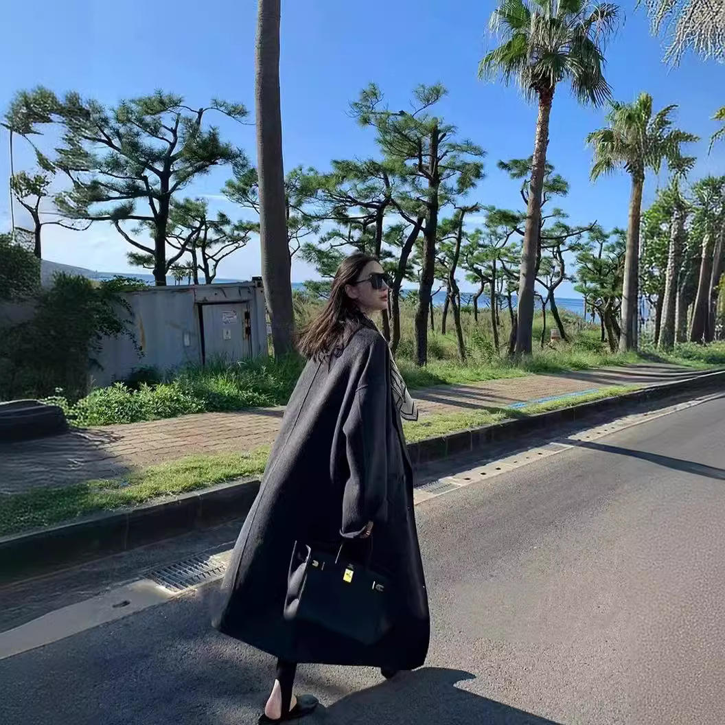 Zhou Miao ZHOUMIAO 900g sheep wool double-sided woolen coat women's autumn and winter arc split cocoon woolen coat