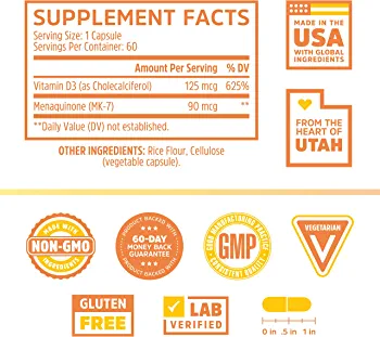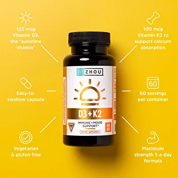 | nameOriginal | Zhou Nutrition Vitamin D3 K2, Bone and Heart Health Formula 5000 IU Vitamin D3 & 100 mcg Vitamin K2, Max Strength 2 in 1 Immune Support and Calcium Absorption, Gluten Free, 60 Count |