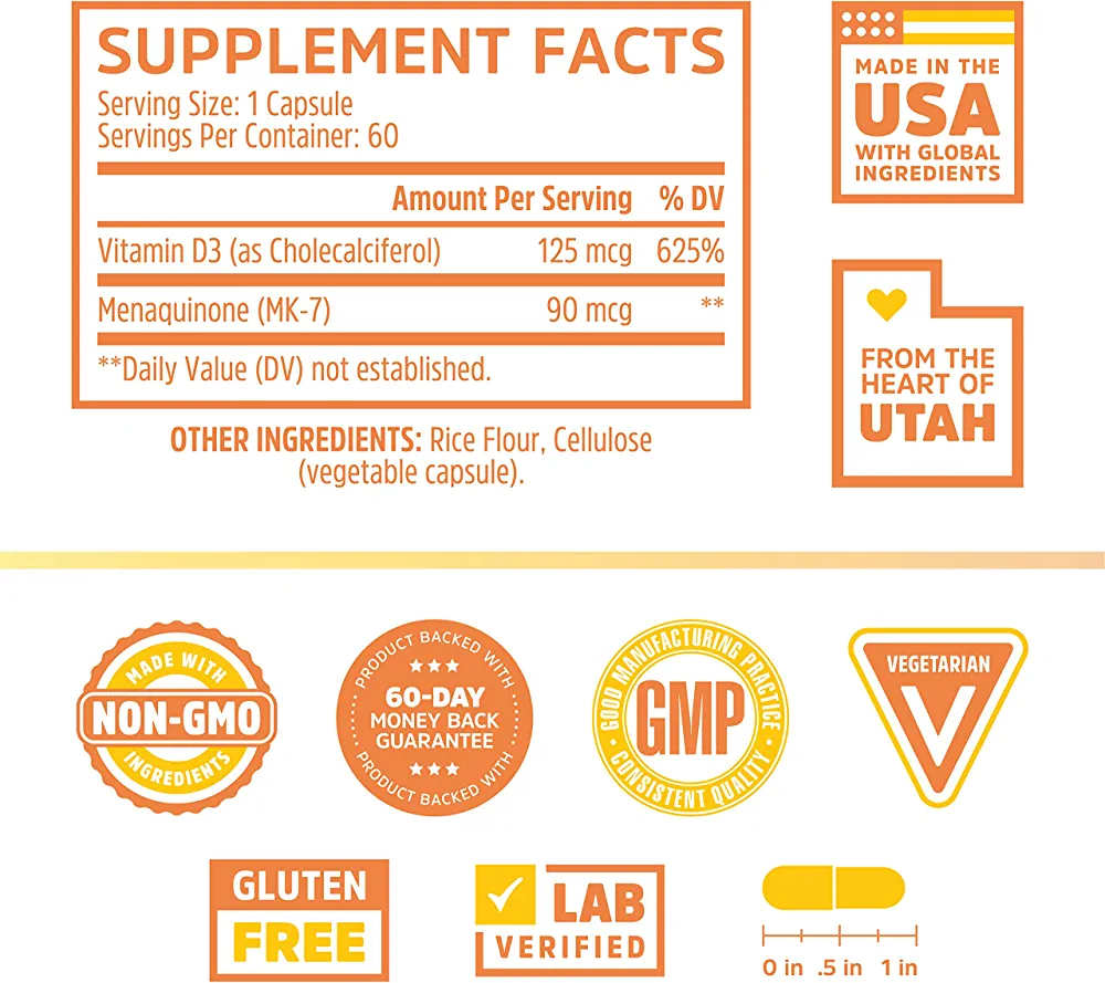 | descriptionOriginal | Description D3 + K2 is your go-to vitamin D supplement to support your immune system, heart, bones, muscles and mood. Vitamin D3 is THAT important, and it needs vitamin K2 to maximize all those benefits. With an estimated 1 billion people worldwide experiencing vitamin D deficiencies, supplementing is an effective solution—especially if you get less sun exposure during those winter months. Our premium formulation packs a punch with 125 mcg per serving and the most bioavailable form of K2 available (MK-7). |