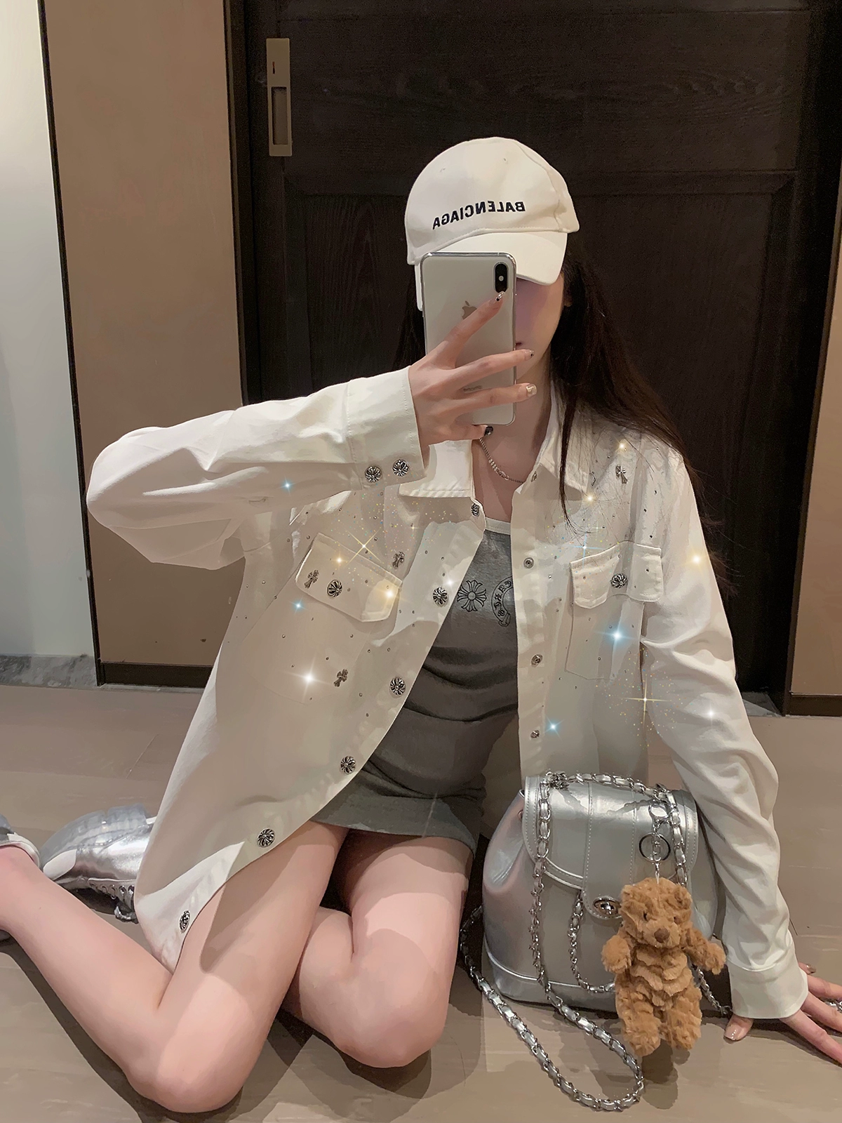 Zhuangdani Super Heavy Industry Design Sense Denim Shirt Hot Diamond