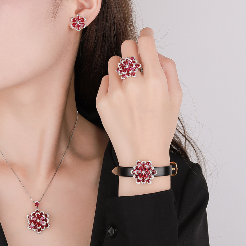 | nameOriginal | Zhuang Sheng jewelry copper bottom gold-plated simulation red corundum eternal flower advanced light luxury suit women |