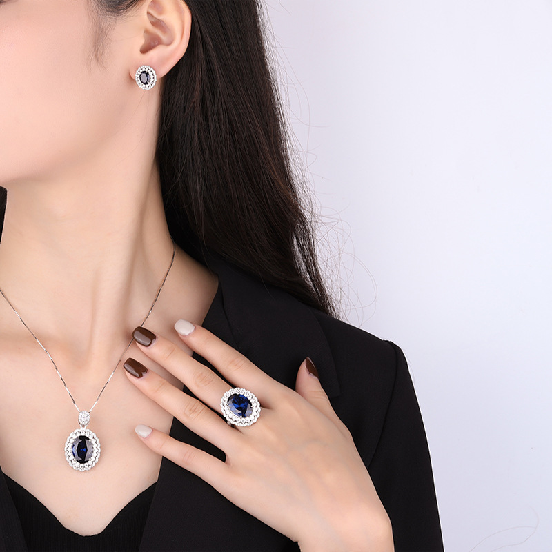 | nameOriginal | Zhuang Sheng jewelry S925 silver TikTok hot sale simulation tansang Lanbao jewelry suit main stone 12*16-6*8 |