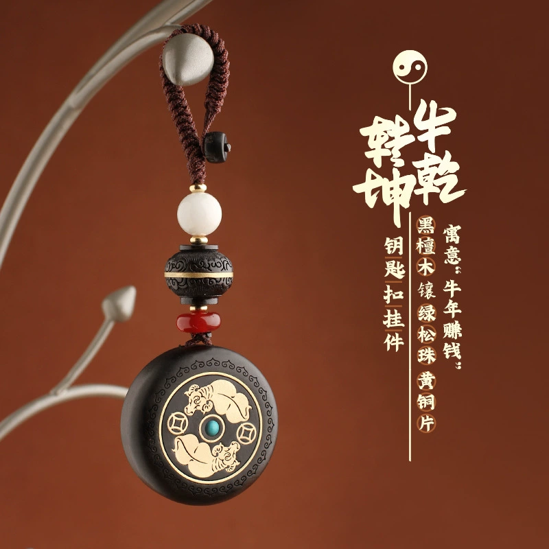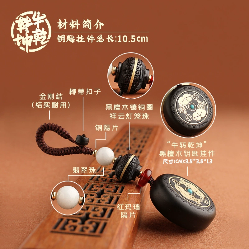 | nameOriginal | Zhuanzhuan ebony car keychain zodiac sign belongs to the ox, the zodiac year of the ox, the ox turns the world, transfers money and makes money, handle piece |