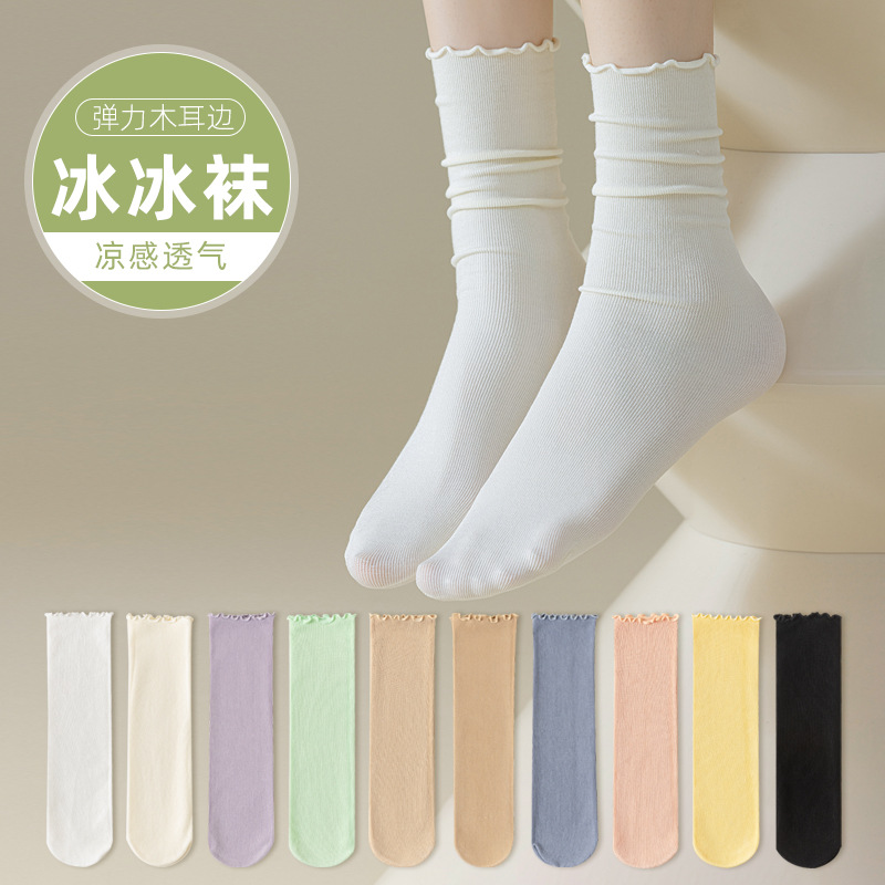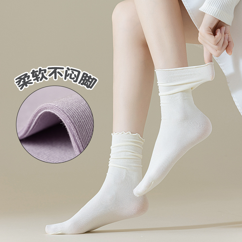 | nameOriginal | Zhuji Socks Women's Spring and Summer New Stacked Socks Solid Color Wood Ear Mid-range Socks Jk Socks Torre Shoes All-match Women's Socks |