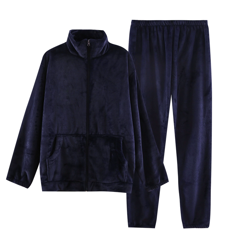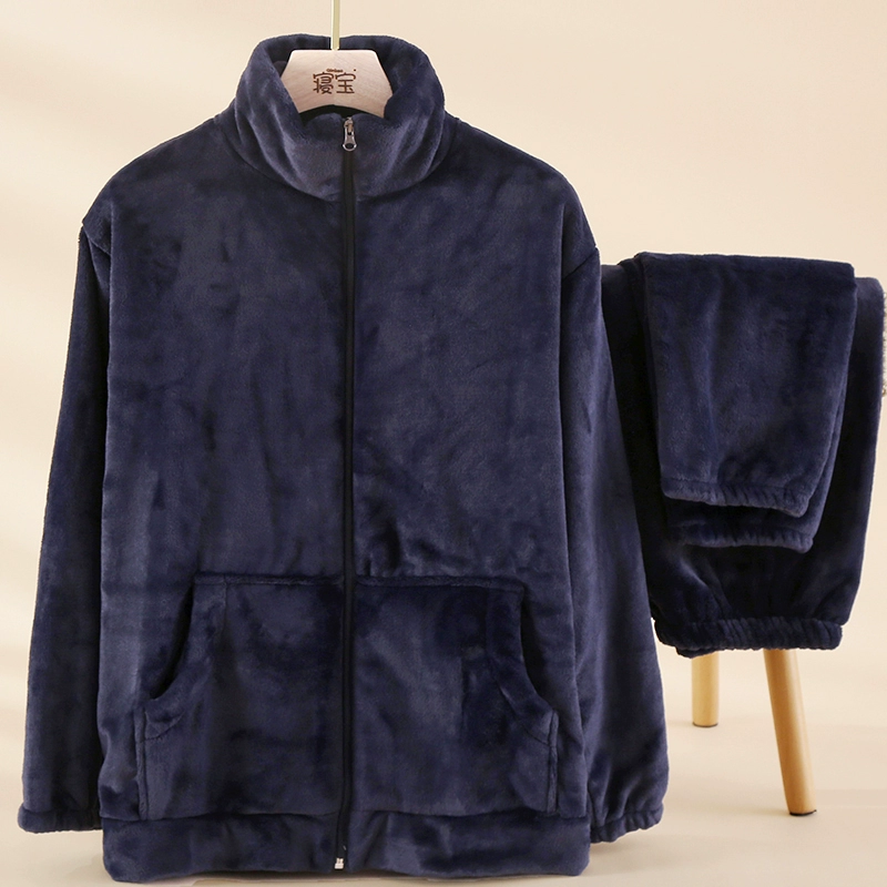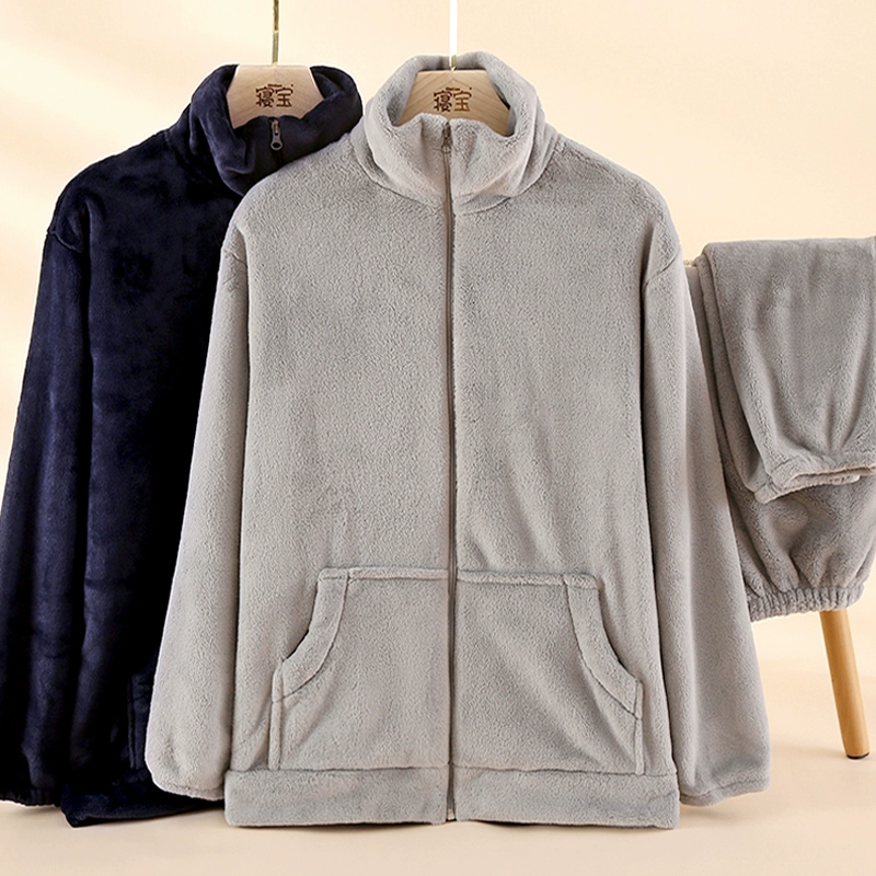 | nameOriginal | Zipper men's coral velvet pajamas autumn and winter plus velvet thickened flannel solid color plush outer wear home wear set |