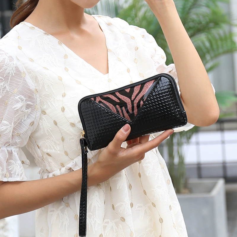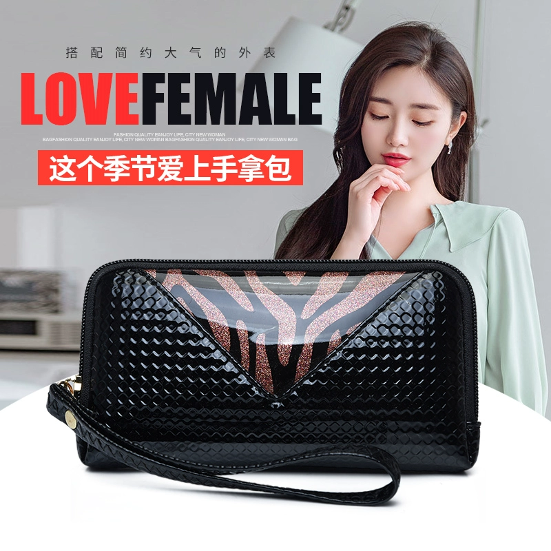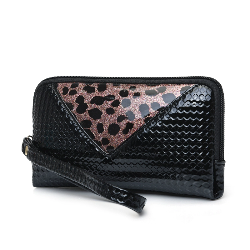 Zipper wallet ladies clutch 2024 new patent leather glossy clutch simple small bag leopard print mobile phone bag