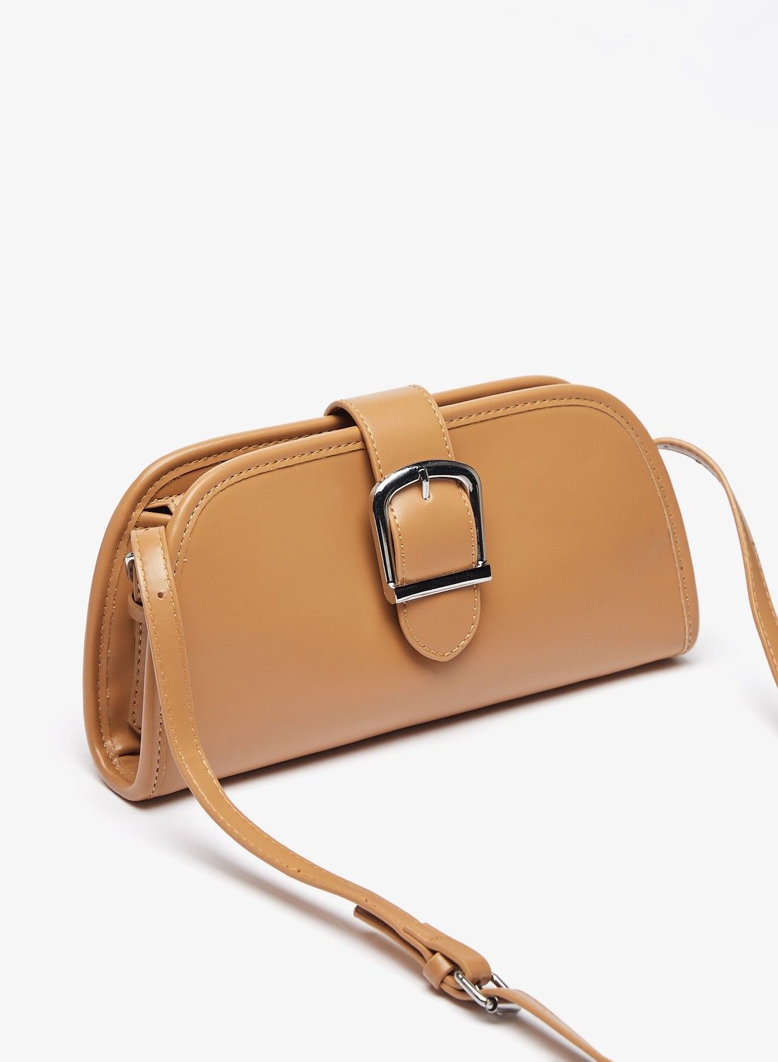 | nameOriginal | Solid Crossbody Bag with Zip Closure and Buckle Detail |