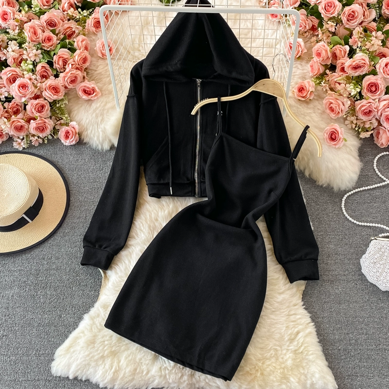 | nameOriginal | Zippered short strapless strappy hip hooded sweatshirt |