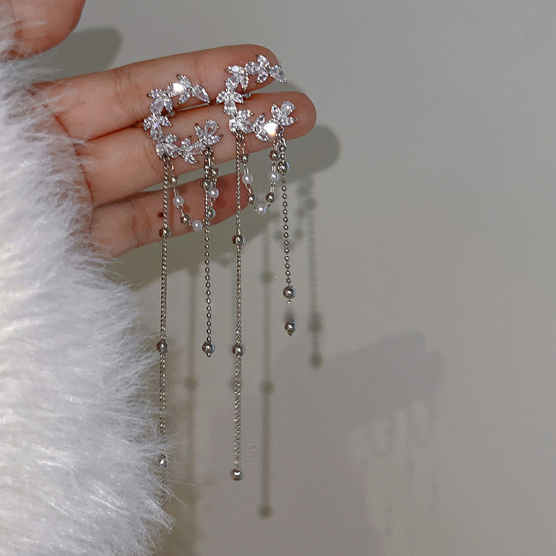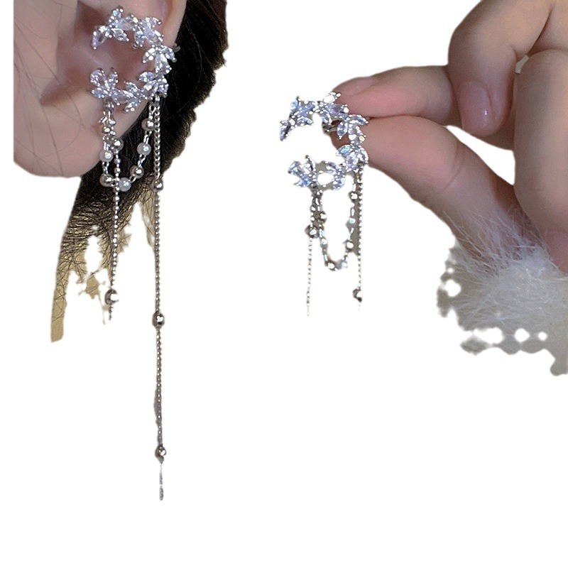 | nameOriginal | Zircon Crescent C- shaped pearl tassel ear clip Korean fashion design no ear hole ear bone clip New earrings wholesale |