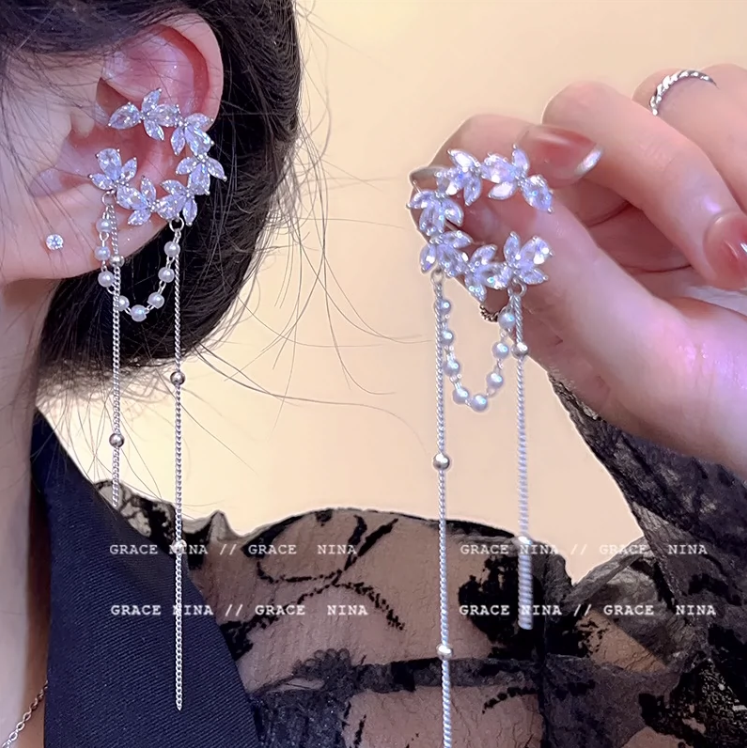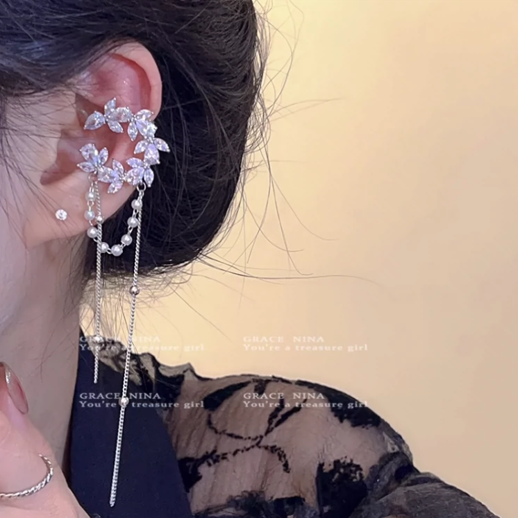 | nameOriginal | Zircon crescent C-shaped pearl tassel ear clip Korean fashion design non-pierced ear bone clip 2023 new earrings |