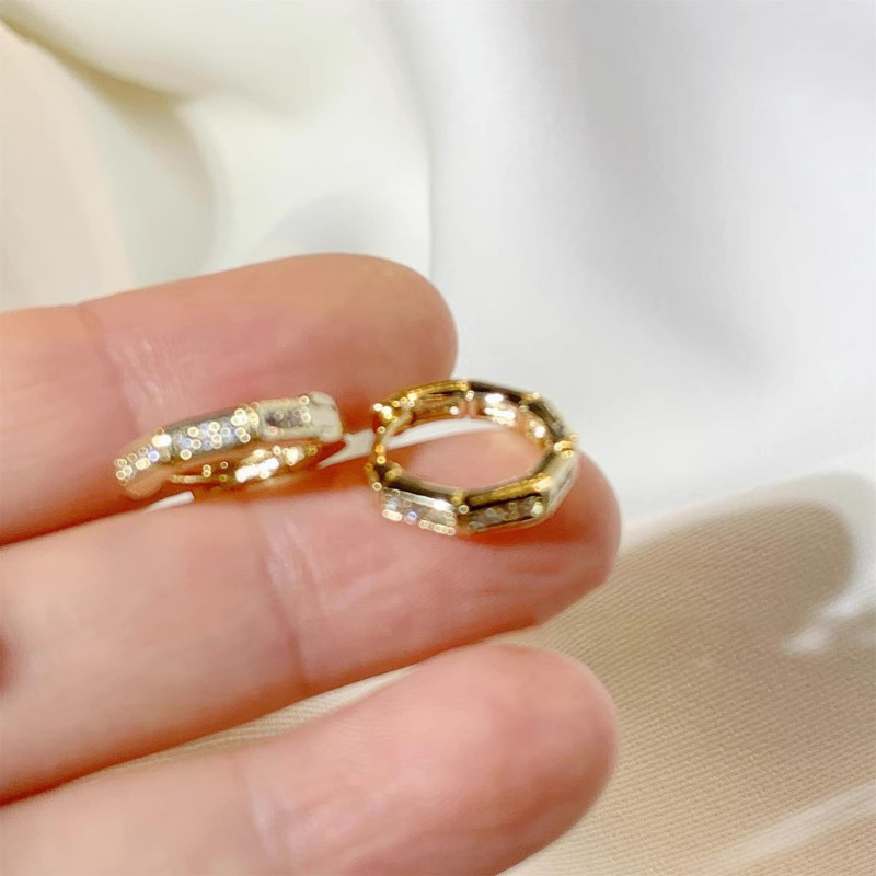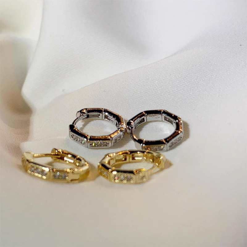 | nameOriginal | Zircon Ear Buckle Women's Light Luxury Niche Design Sense Hexagonal Ear Ring Summer Elegant Commuting Geometric Row Drill Earrings |