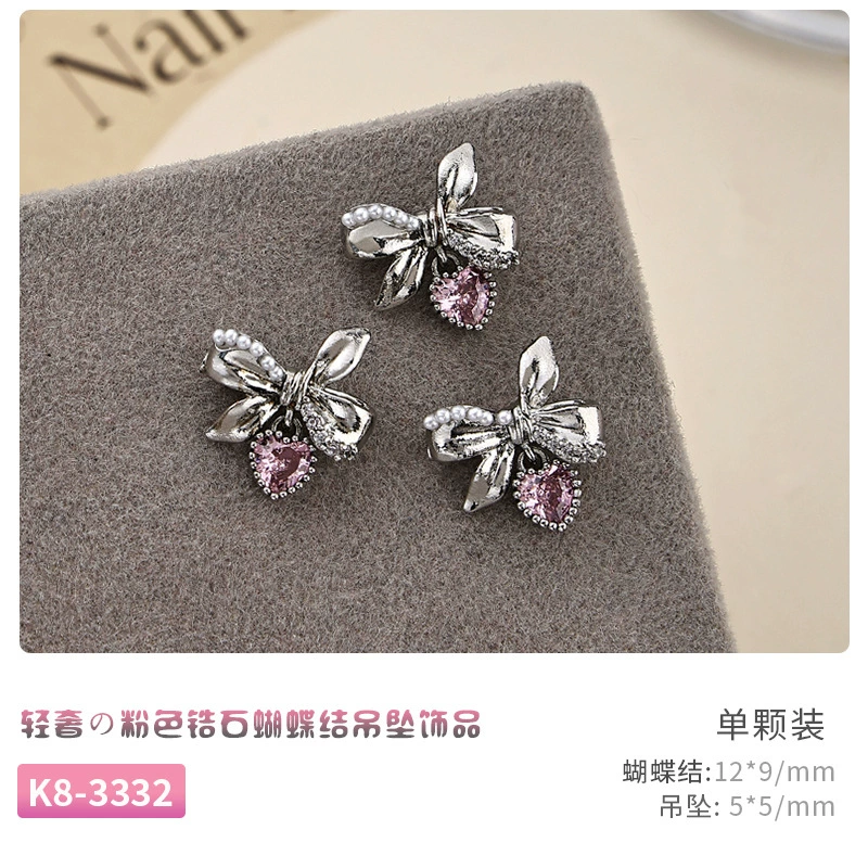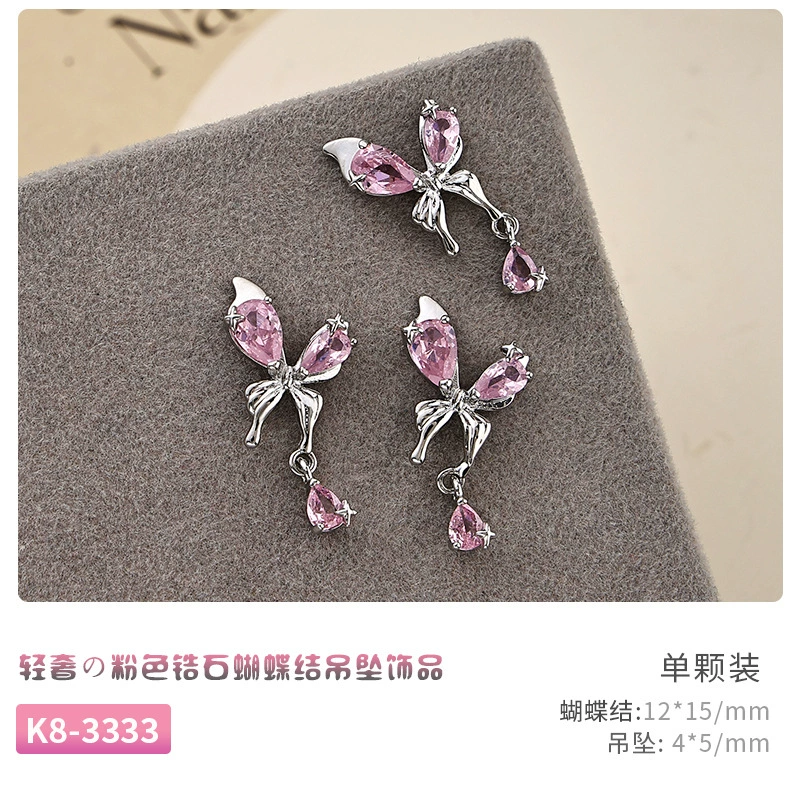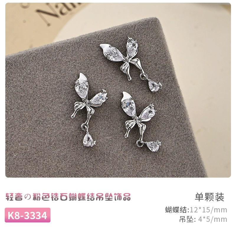 Zircon manicure diamond pink bow pendant jewelry new light luxury silver butterfly love diamond internet celebrity hot style