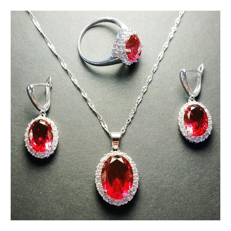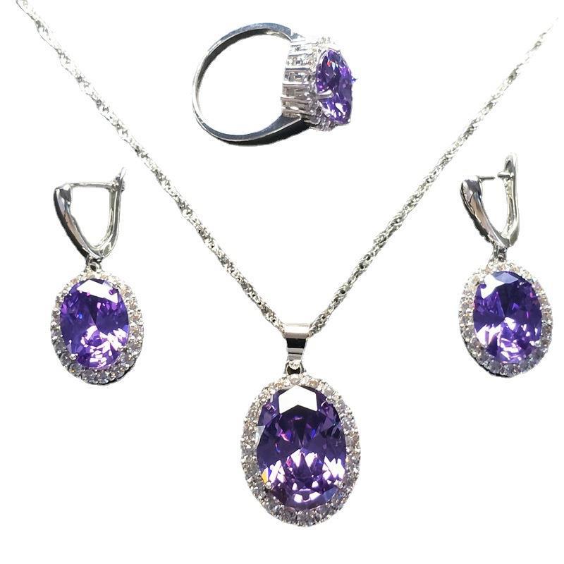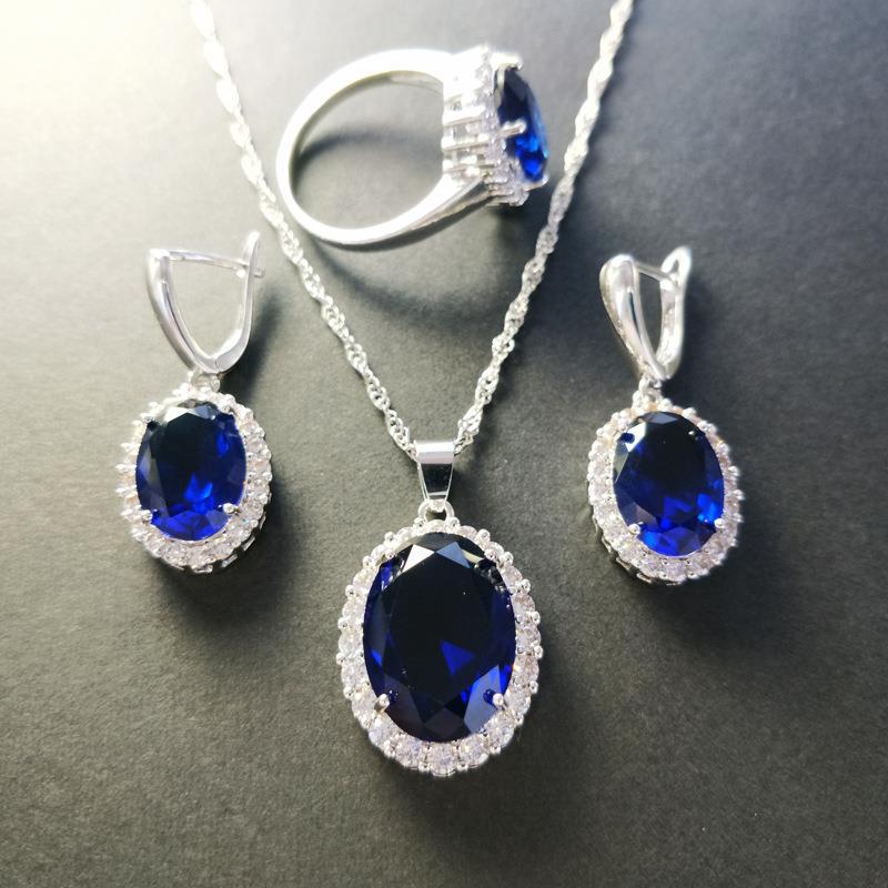 | nameOriginal | Zircon Necklace Bride jewelry Color Treasure set Women's Necklace Earrings Ring Three-Piece set jewelry set |