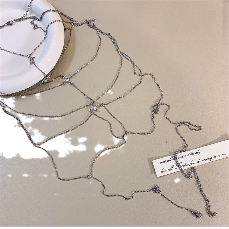 Zircon Tassel Multi-layer Stacked Chest Chain Shoulder Link Necklace Design Sense Niche Personality Fashion Clavicle Chain