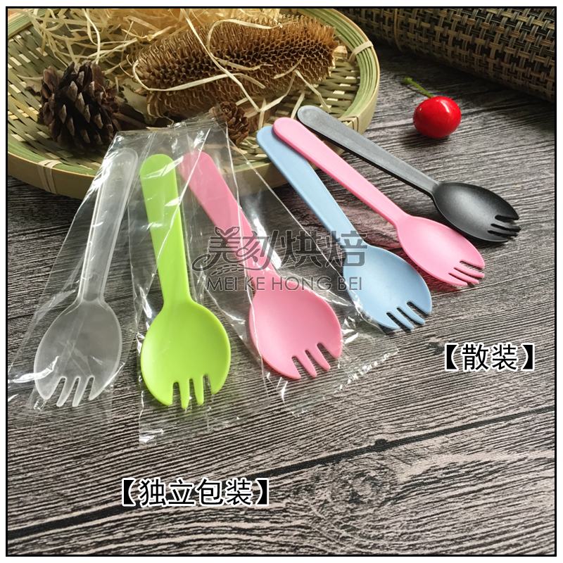 | nameOriginal | ZJ05 disposable cake fork spoon plastic integrated ice cream dessert spoon Fork black three-tooth fork small spoon Independent |