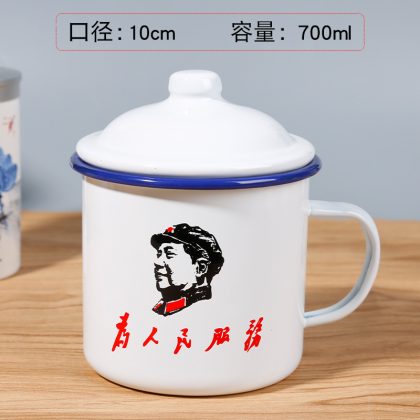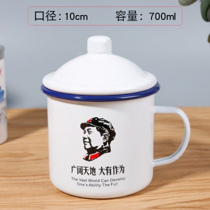 ZJ05 enamel cup nostalgic classic service for people thickened iron tea cup customized large capacity with lid old-fashioned cup