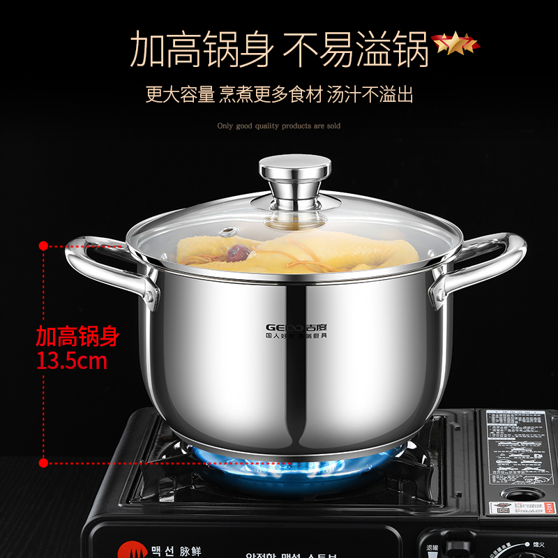 ZJ05 soup pot household 304 stainless steel thickened milk pot double ear cooking pot stew pot gas induction cooker small