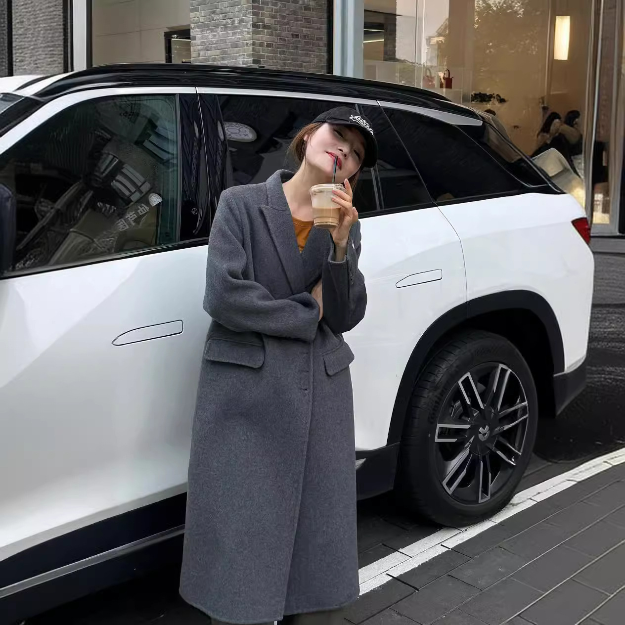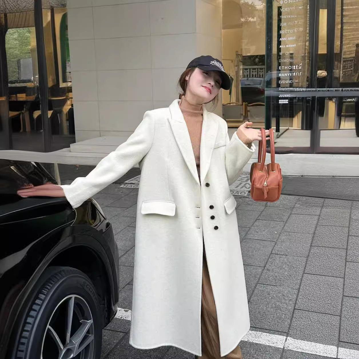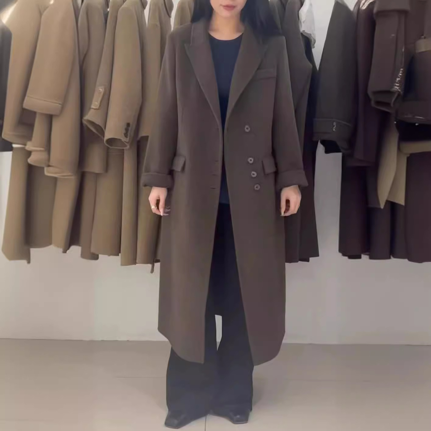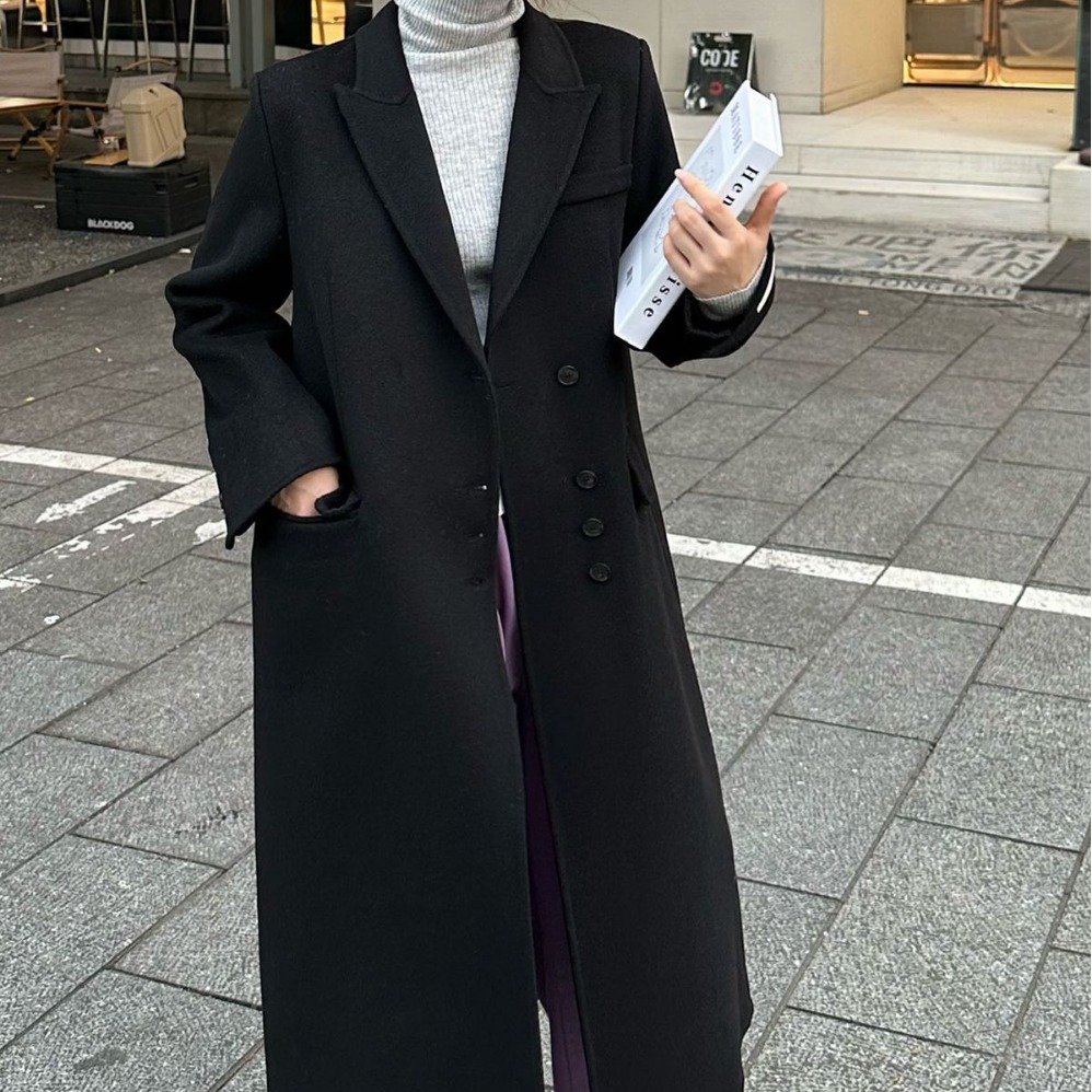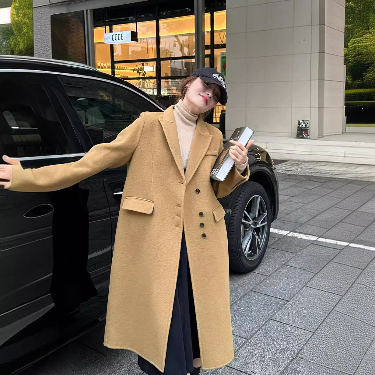 ZL Korean style elegant suit collar high-grade long over-the-knee woolen coat loose slimming double-sided cashmere coat
