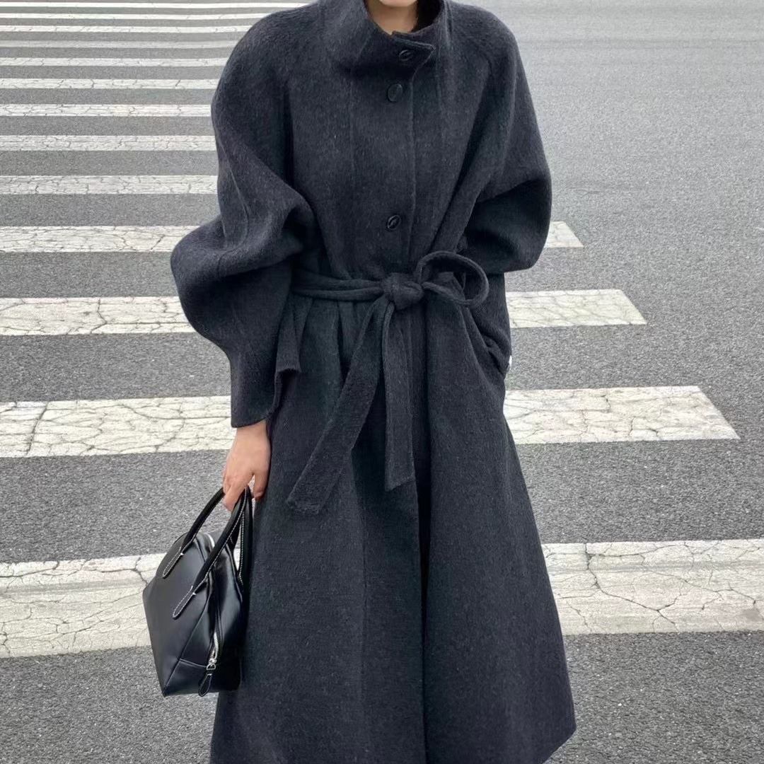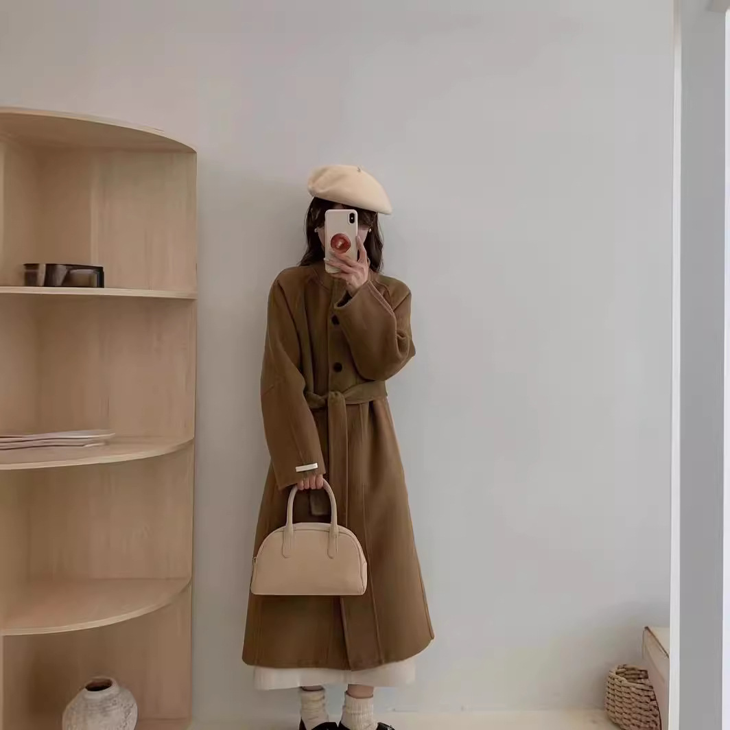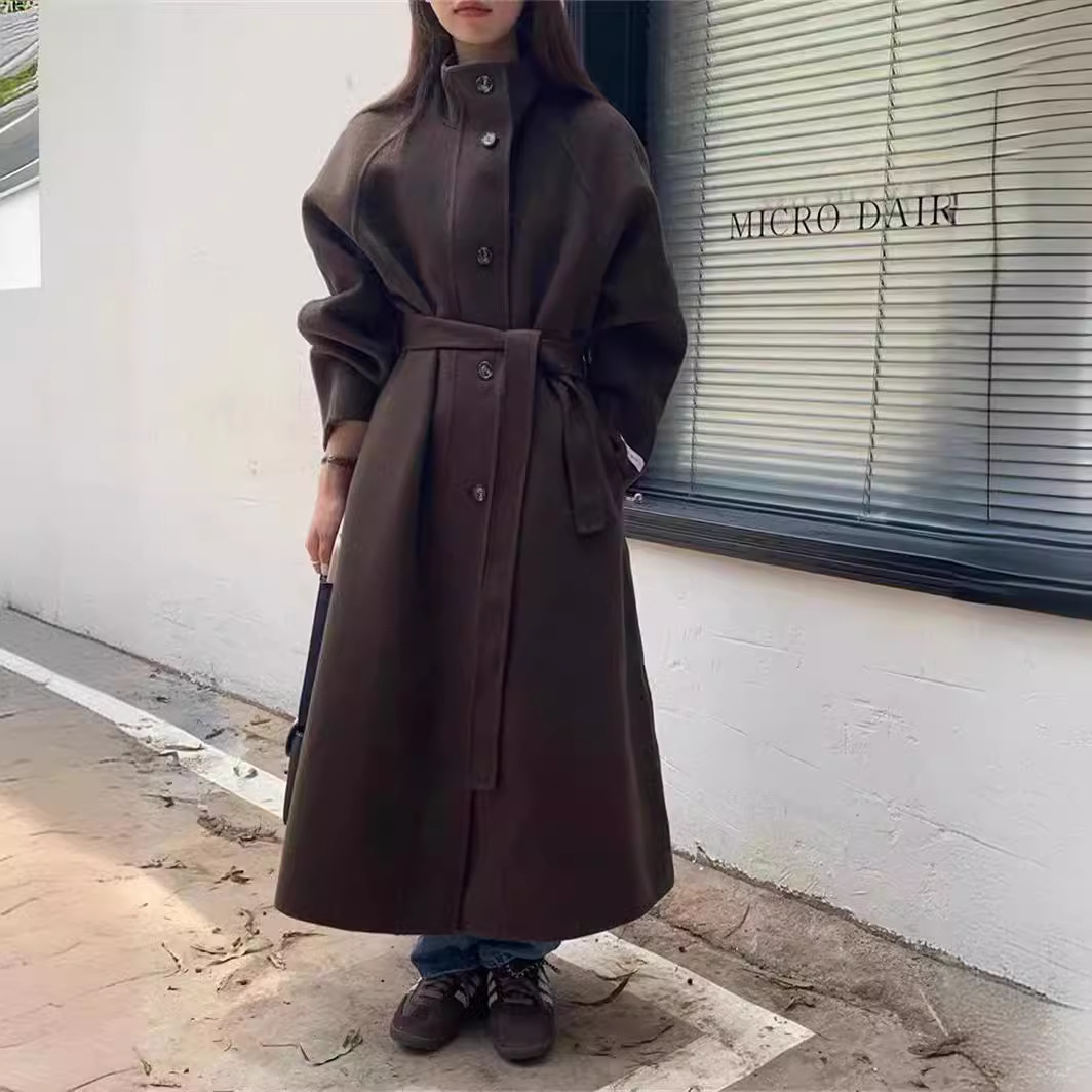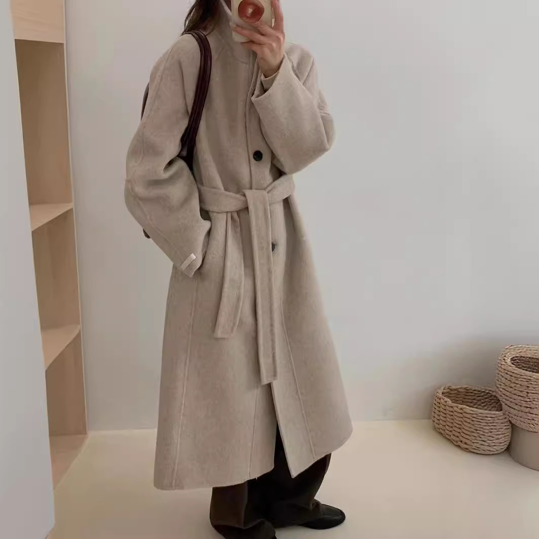 | nameOriginal | ZL new stand collar double-sided cashmere overcoat long over-the-knee Korean style loose lace-up high-grade profile woolen outer |