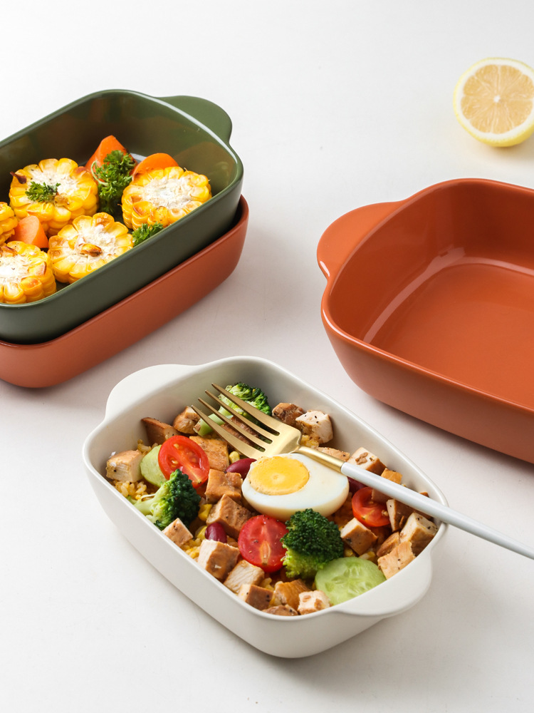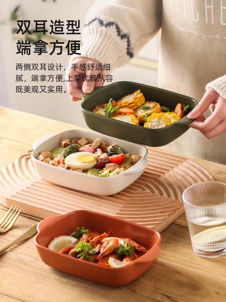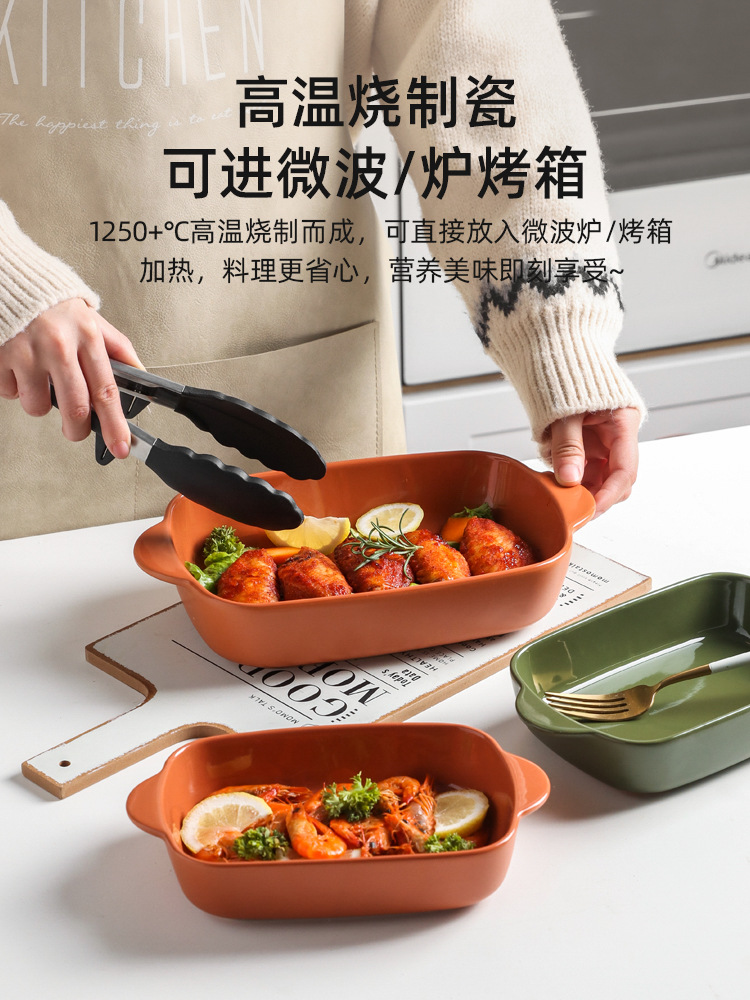 | nameOriginal | ZM6H wholesale cheese baked rice baking pan oven special utensils ceramic bowl tableware rectangular binaural microwave oven plate |