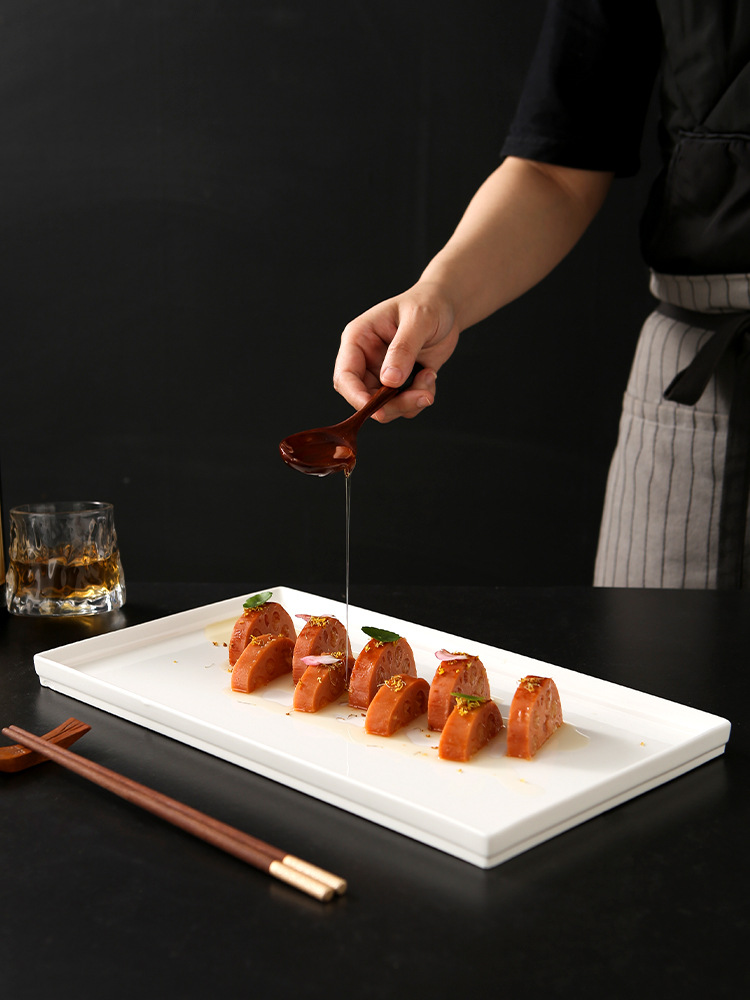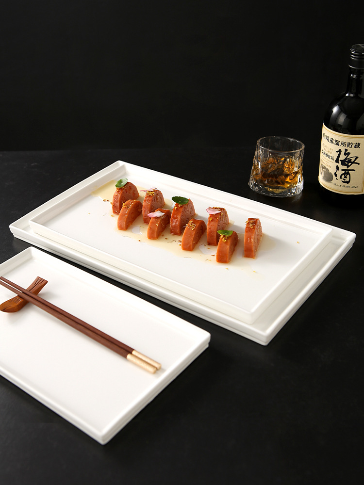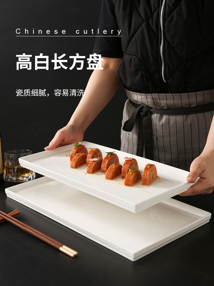 ZM6H wholesale pure white rectangular ceramic flat plate hotel tableware special ceramic plate restaurant commercial plate
