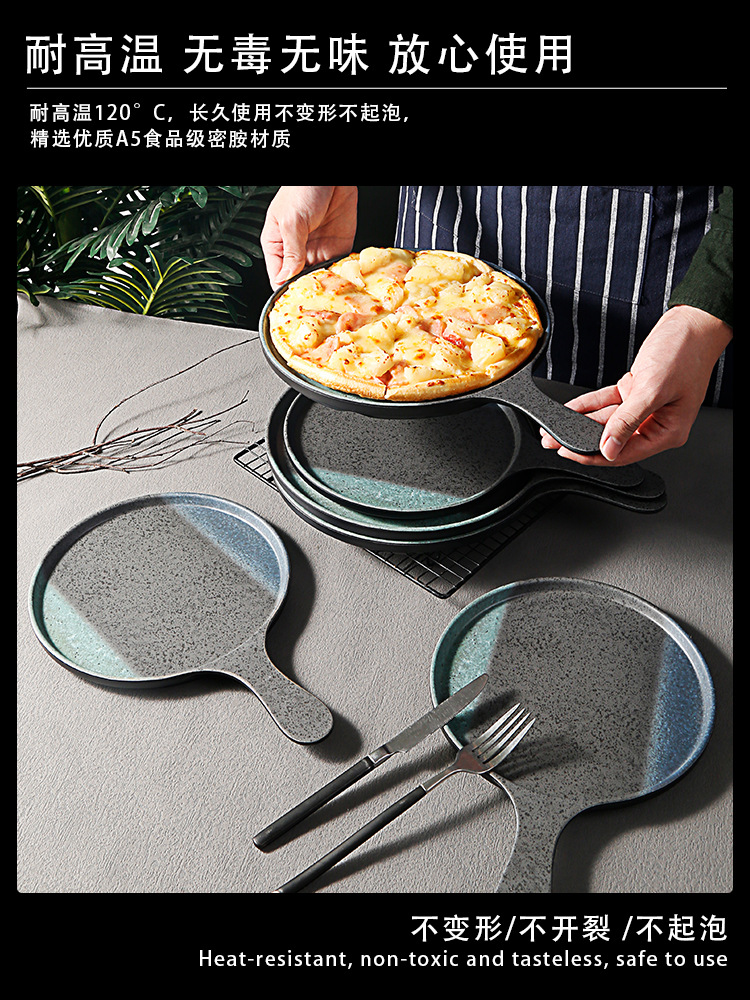 | nameOriginal | ZM6H wholesale restaurant pizza plate thickened melamine plate imitation porcelain plastic with handle disc hot pot restaurant barbecue dish |
