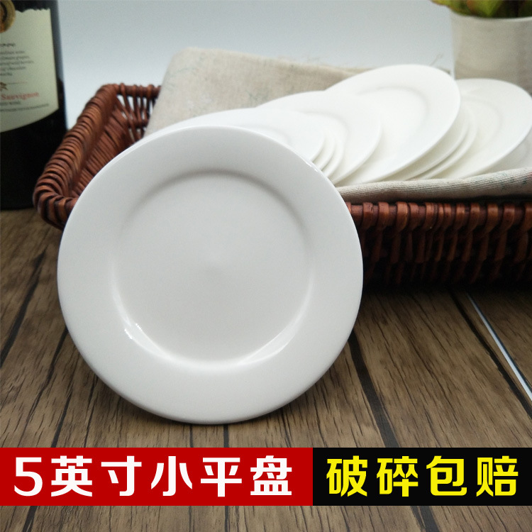 ZM6H wholesale small plate 5-inch commercial small plate ceramic dessert small crisp meat cake plate white tone