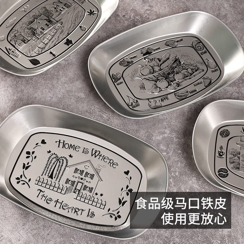 | nameOriginal | ZM6H wholesale vintage tinplate American dinner plate outdoor camping tableware plate tray picnic fruit plate commercial |
