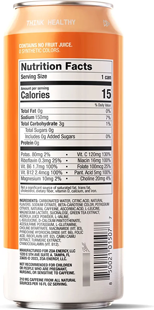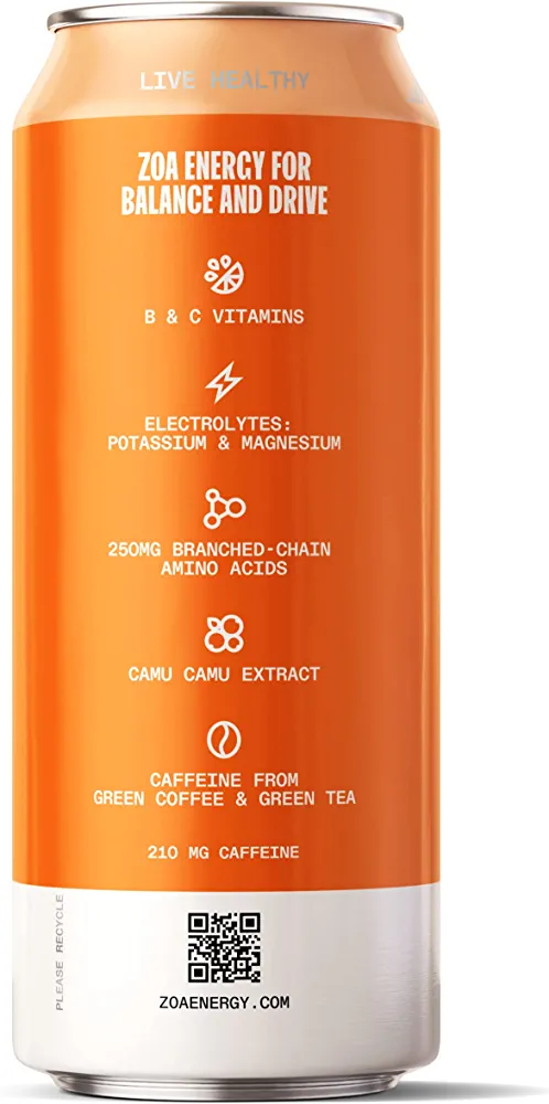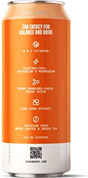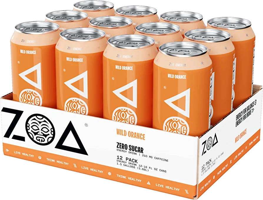 | nameOriginal | ZOA Zero Sugar Energy Drinks – Wild Orange, Healthy Energy Formula with Natural Caffeine, Daily Vitamin C, Essential B-Vitamins, Gluten Free, Keto Friendly, 16 Ounce Cans (Pack of 12) |