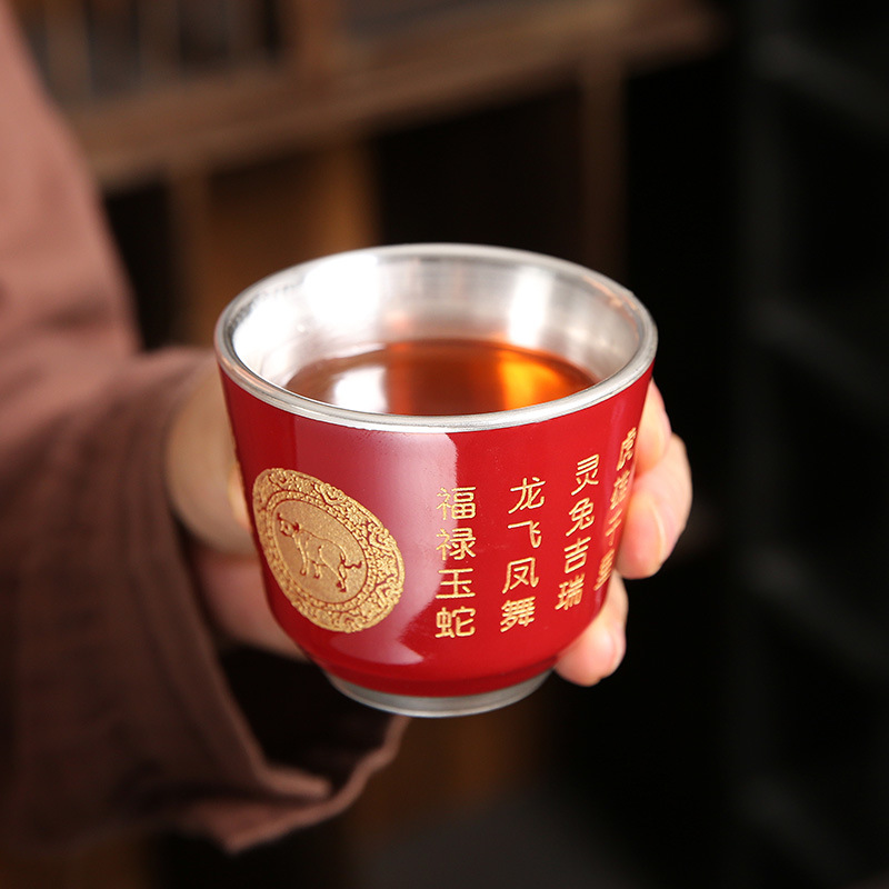 | nameOriginal | Zodiac inlaid silver Master Cup Single Cup 999 sterling silver tea cup kung fu tea bowl silver tea cup ceramic |