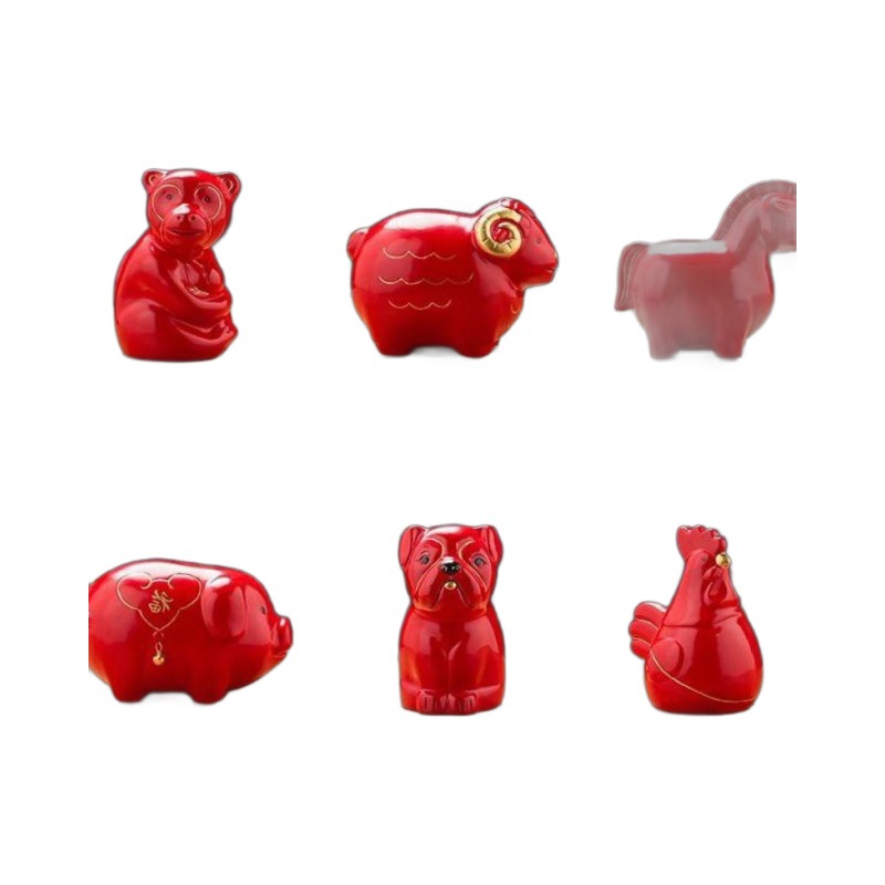 Zodiac Rat Ox Tiger Rabbit Dragon Snake Horse Sheep Monkey Chicken Dog Pig Piggy Bank Ceramic Red Children's Creative Gift Ornaments