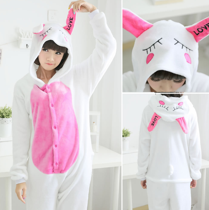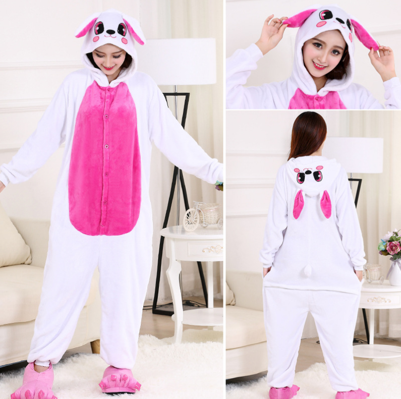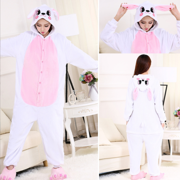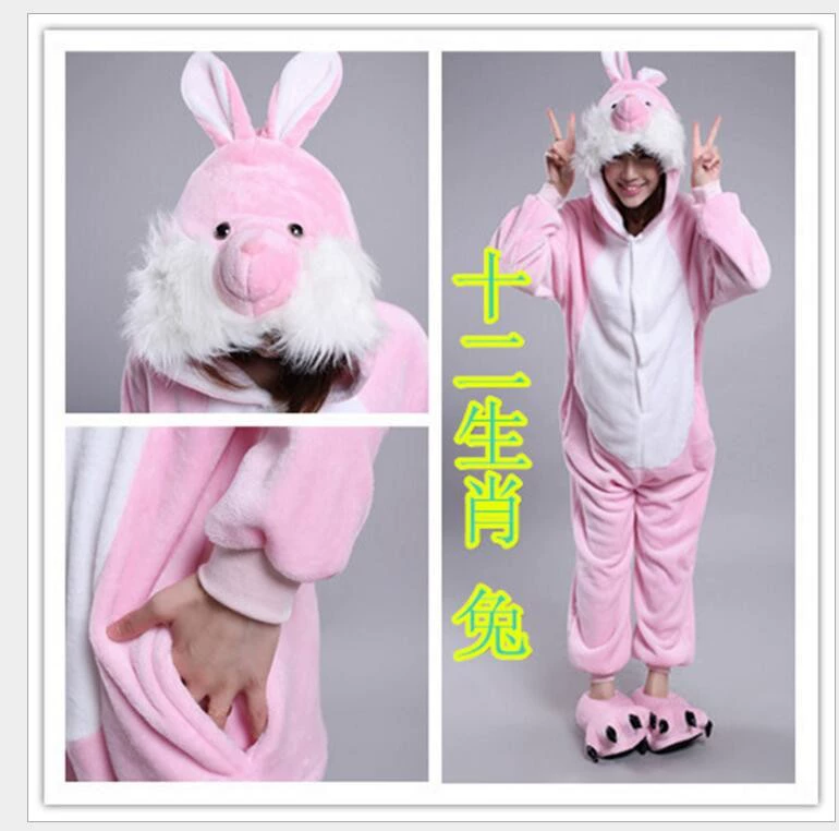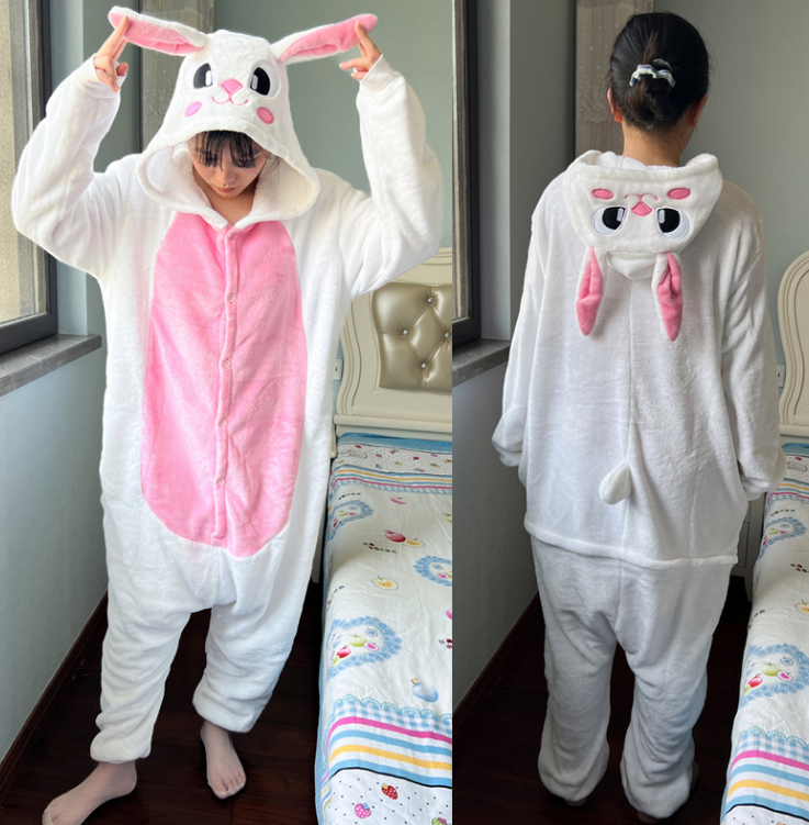 Zodiac Year of the Rabbit Cartoon One-piece Pajamas for Boys and Girls Flannel Autumn and Winter Party Stage Performance Children's Rabbit Costumes