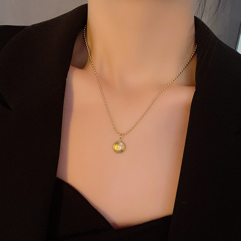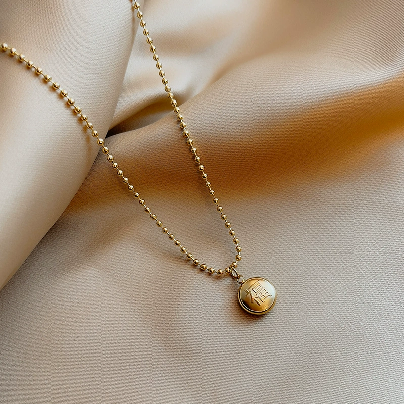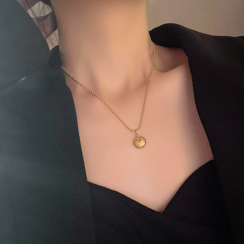 | nameOriginal | Zodiac year round bead coin gold coin necklace women's simple retro clavicle chain titanium steel jewelry temperament versatile accessories |