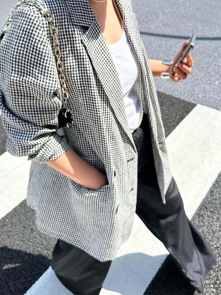 | nameOriginal | ZOEYJA LD silhouette is very handsome, custom-woven full linen symmetrical aesthetic checkered light suit jacket |