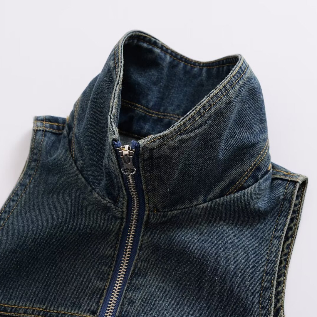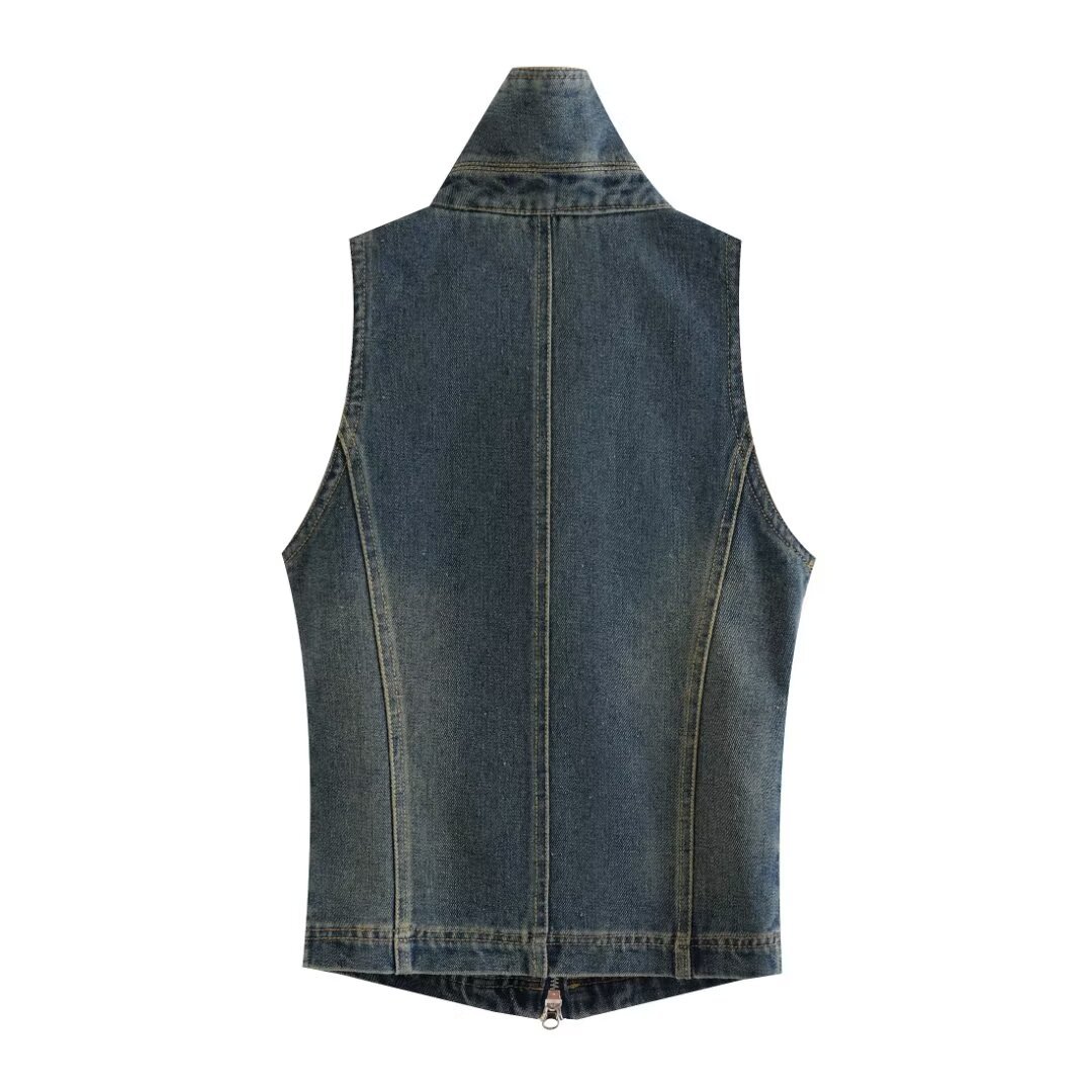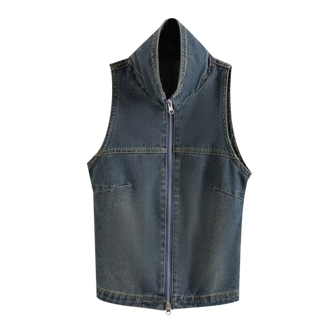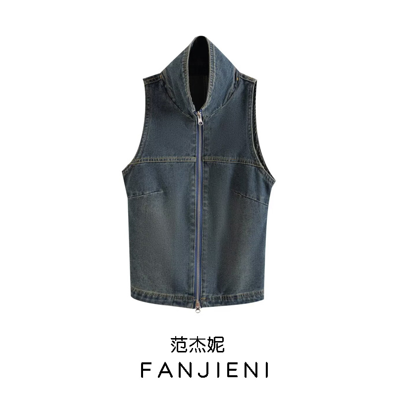 | nameOriginal | ZR foreign trade wholesale European and American style women's fashion zipper decoration sleeveless Denim vest coat UWJ840058 |