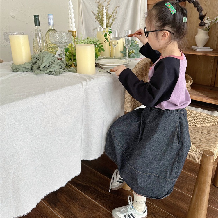 | nameOriginal | Zuo Xiaoran children's clothing 2024 spring Korean style children's horizontal line Denim skirt fashionable all-match stitching Denim skirt |