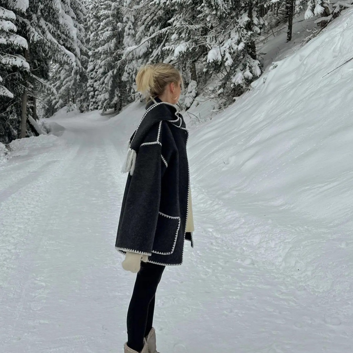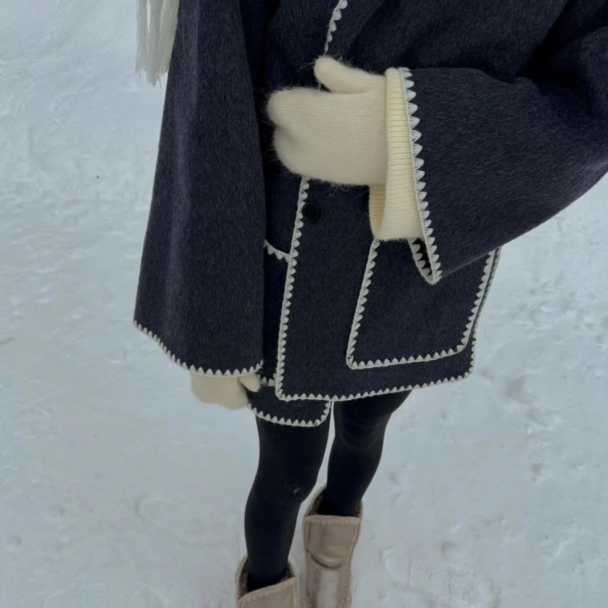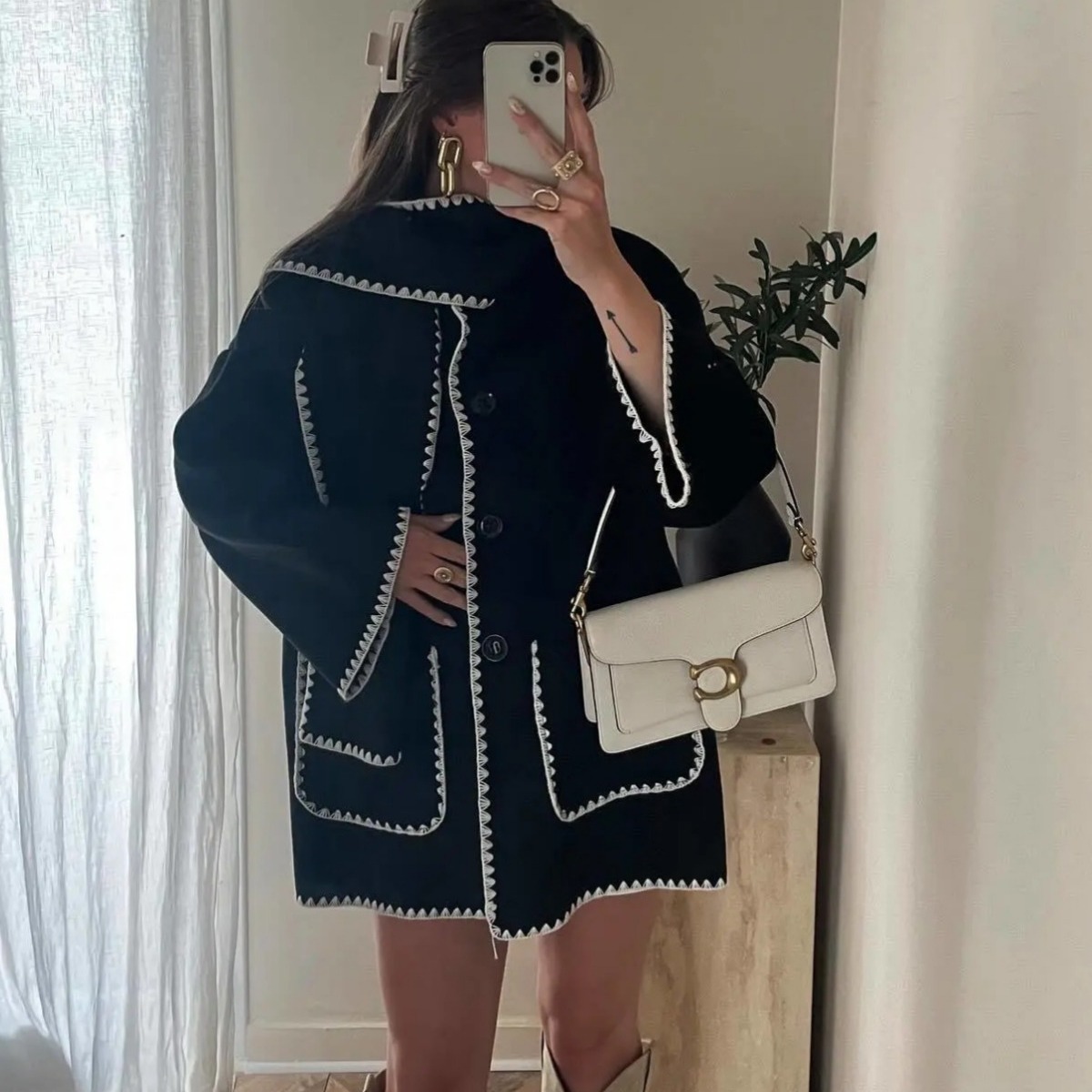 ZUR mall same style contrast color scarf decorative woolen coat loose slimming pocket long sleeve design comfortable warm