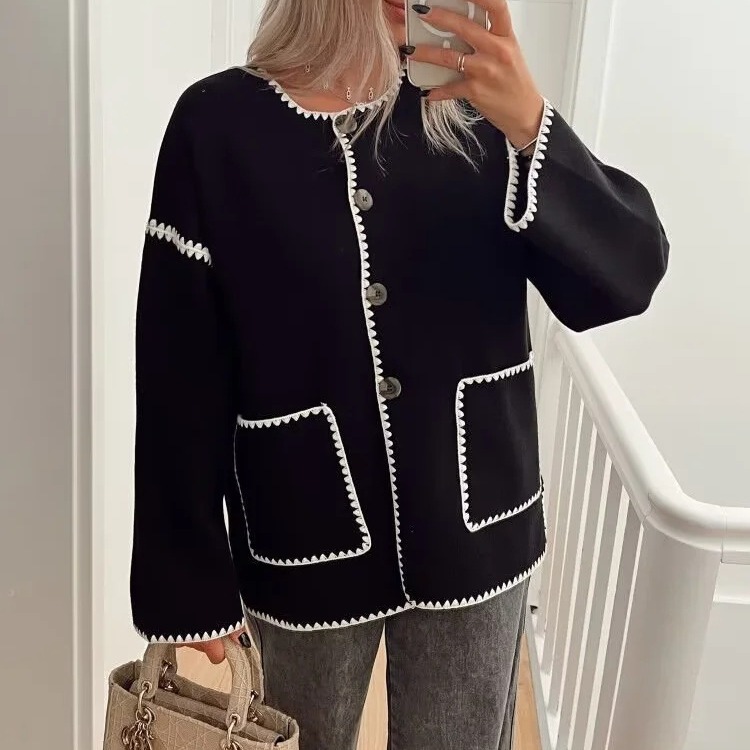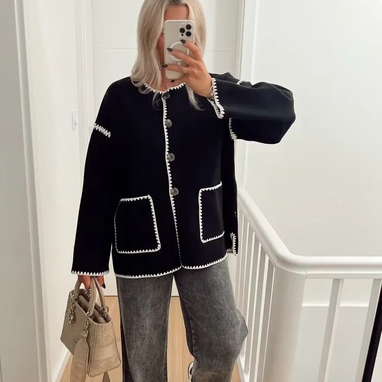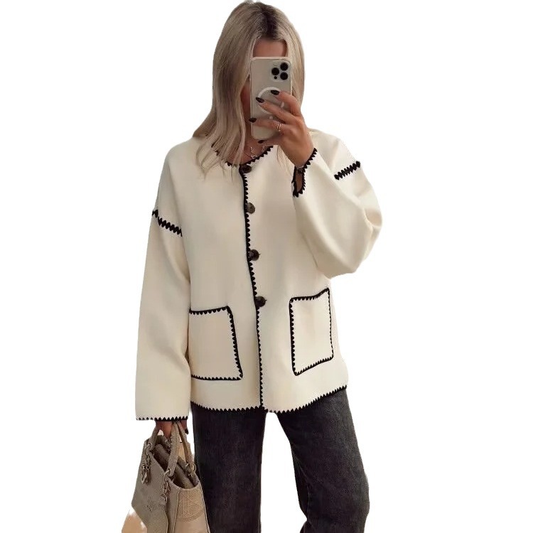 ZUR mall same woolen contrast color coat autumn and winter loose slimming long sleeve comfortable casual elegant top