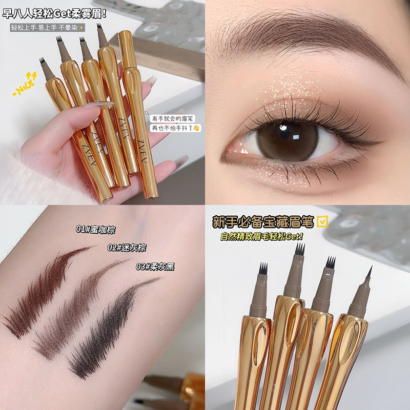 ZVEV four fork eyebrow pencil waterproof sweat-proof lasting does not fade liquid quick-drying lazy novice essential simulation wild pen