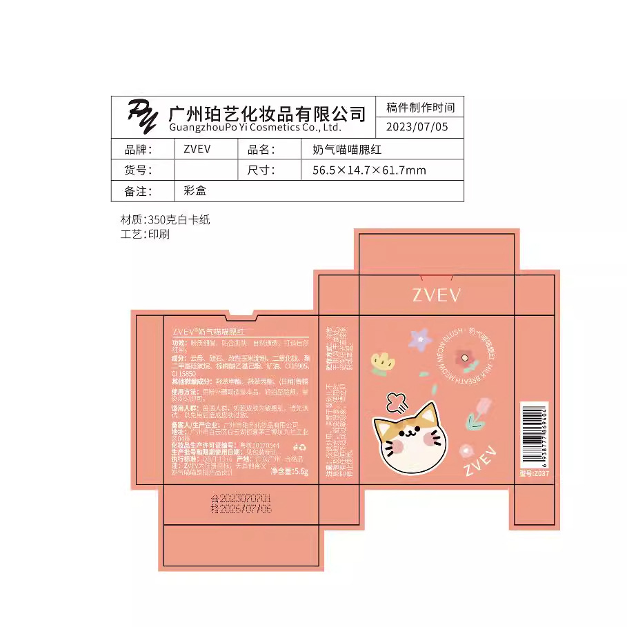 ZVEV milk gas Meow Meow blush highlight Integrated Plate Rouge cream uniform skin color Rouge repair powder blush powder for women